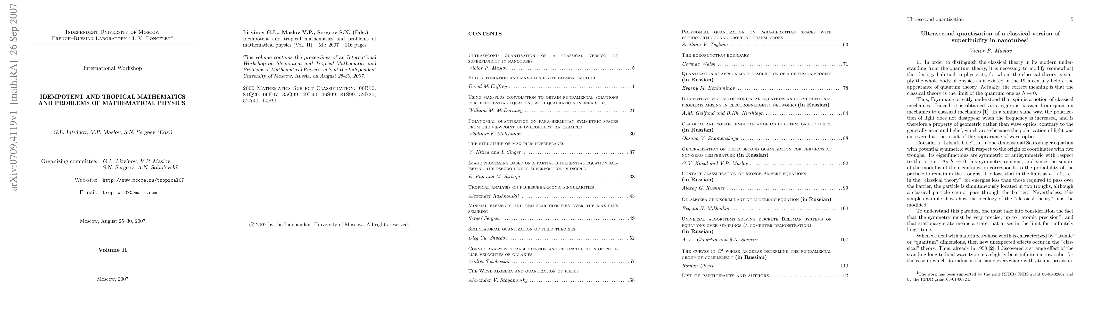 This volume contains the proceedings of an International Workshop on Idempotent and Tropical Mathematics and Problems of Mathematical Physics, held at the Independent University of Moscow, Russia, on August 25-30, 2007.