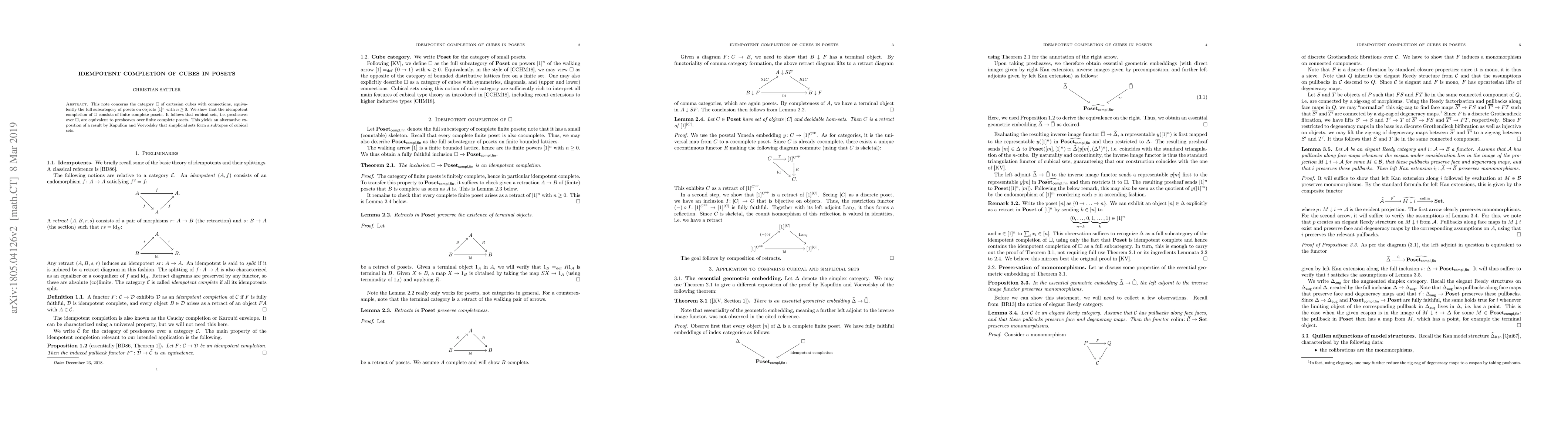 This note concerns the category $\Box$ of cartesian cubes with connections, equivalently the full subcategory of posets on objects $[1]^n$ with $n \geq 0$. We show that the idempotent completion of $\Box$ consists of finite complete posets. It follows that cubical sets, ie presheaves over $\Box$, are equivalent to presheaves over finite complete posets. This yields an alternative exposition of a result by Kapulkin and Voevodsky that simplicial sets form a subtopos of cubical sets.