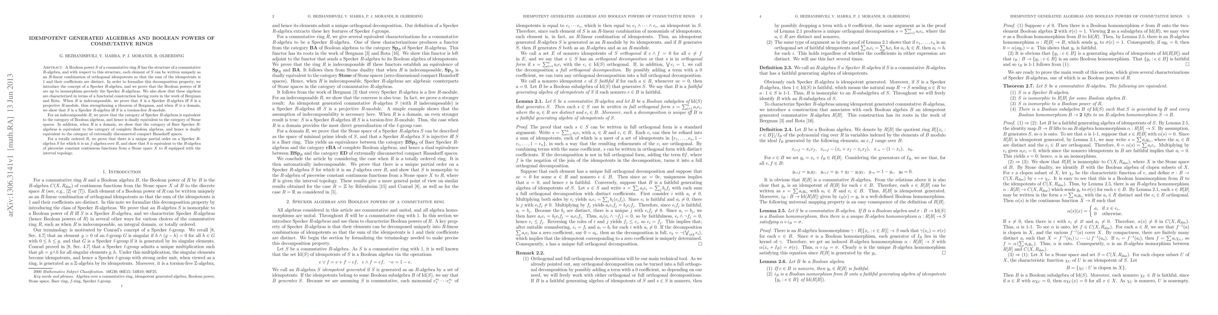 A Boolean power S of a commutative ring R has the structure of a commutative R-algebra, and with respect to this structure, each element of S can be written uniquely as an R-linear combination of orthogonal idempotents so that the sum of the idempotents is 1 and their coefficients are distinct. In order to formalize this decomposition property, we introduce the concept of a Specker R-algebra, and we prove that the Boolean powers of R are up to isomorphism precisely the Specker R-algebras. We also show that these algebras are characterized in terms of a functorial construction having roots in the work of Bergman and Rota. When R is indecomposable, we prove that S is a Specker R-algebra iff S is a projective R-module, thus strengthening a theorem of Bergman, and when R is a domain, we show that S is a Specker R-algebra iff S is a torsion-free R-module. For an indecomposable R, we prove that the category of Specker R-algebras is equivalent to the category of Boolean algebras, and hence is dually equivalent to the category of Stone spaces. In addition, when R is a domain, we show that the category of Baer Specker R-algebras is equivalent to the category of complete Boolean algebras, and hence is dually equivalent to the category of extremally disconnected compact Hausdorff spaces. For a totally ordered R, we prove that there is a unique partial order on a Specker R-algebra S for which it is an f-algebra over R, and show that S is equivalent to the R-algebra of piecewise constant continuous functions from a Stone space X to R equipped with the interval topology.