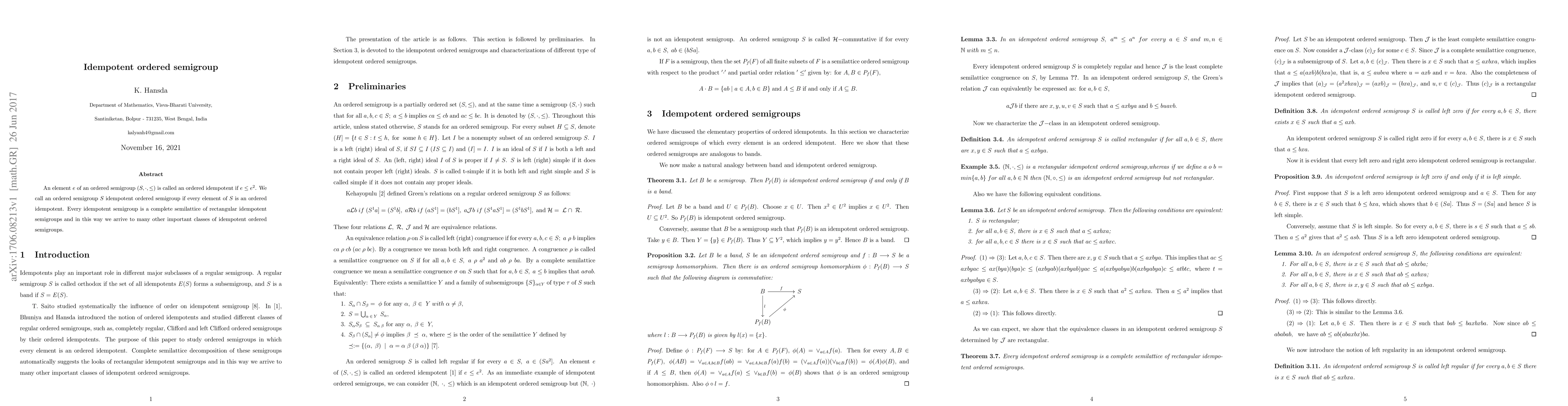 Summary: The paper defines ordered idempotent elements in ordered semigroups and establishes that every idempotent semigroup can be structured as a complete semilattice of rectangular idempotent semigroups, leading to significant classifications of idempotent ordered semigroups.