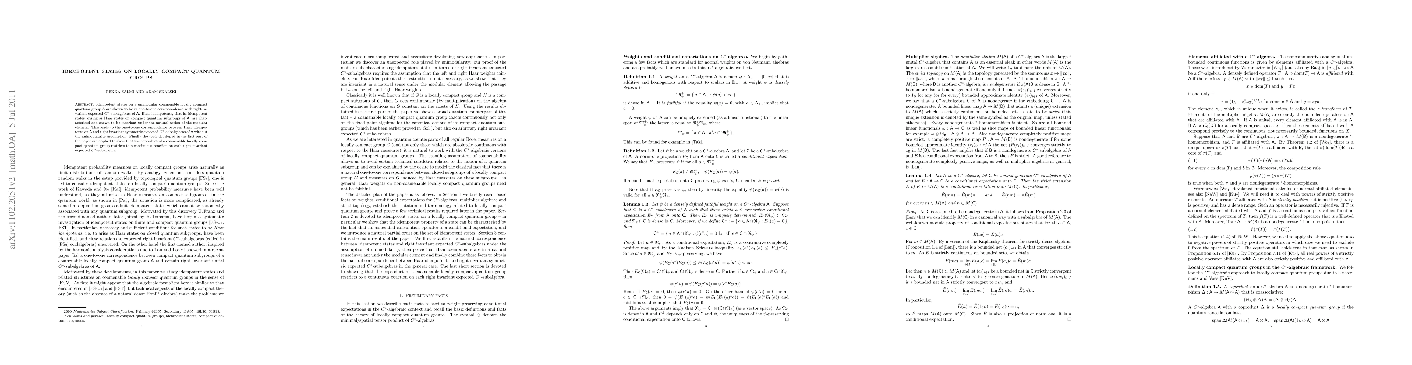 Idempotent states on a unimodular coamenable locally compact quantum group A are shown to be in one-to-one correspondence with right invariant expected C*-subalgebras of A. Haar idempotents, that is, idempotent states arising as Haar states on compact quantum subgroups of A, are characterised and shown to be invariant under the natural action of the modular element. This leads to the one-to-one correspondence between Haar idempotents on A and right invariant symmetric expected C*-subalgebras of A without the unimodularity assumption. Finally the tools developed in the first part of the paper are applied to show that the coproduct of a coamenable locally compact quantum group restricts to a continuous coaction on each right invariant expected C*-subalgebra.
