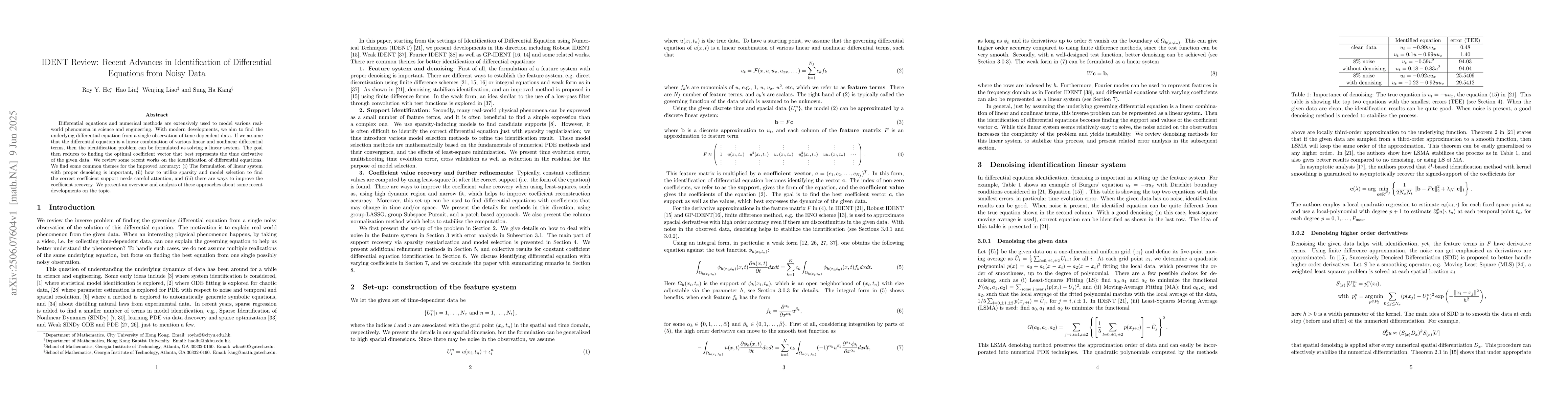 Researchers review recent advances in identifying differential equations from noisy data, highlighting key findings on linear system formulation, sparsity, and coefficient recovery for improved accuracy.