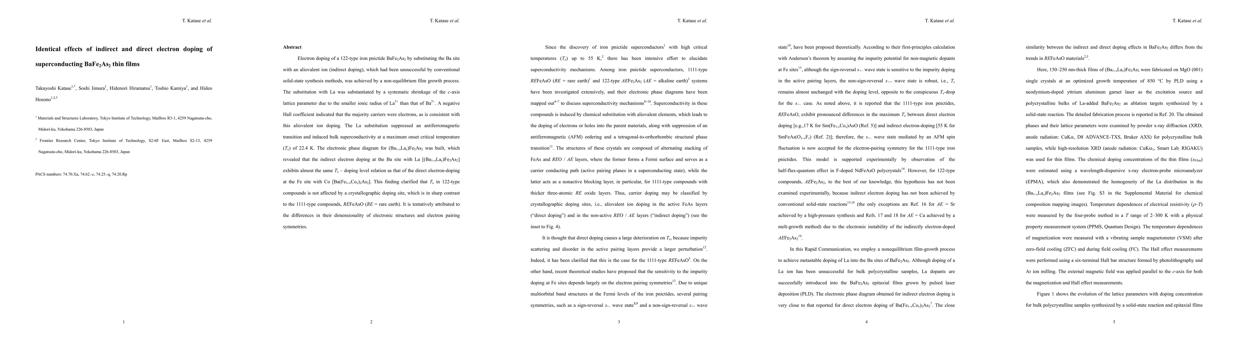 This research demonstrates that electron doping BaFe2As2 thin films, whether direct at the Fe site or indirect at the Ba site with La, yields similar superconducting critical temperatures (Tc). The study achieves indirect doping via a non-equilibrium film growth process, confirming it through lattice parameter changes and Hall coefficient analysis. The findings suggest Tc in 122-type compounds isn't influenced by the doping site, contrasting with 1111-type compounds, possibly due to differences in dimensionality and electron pairing symmetries.