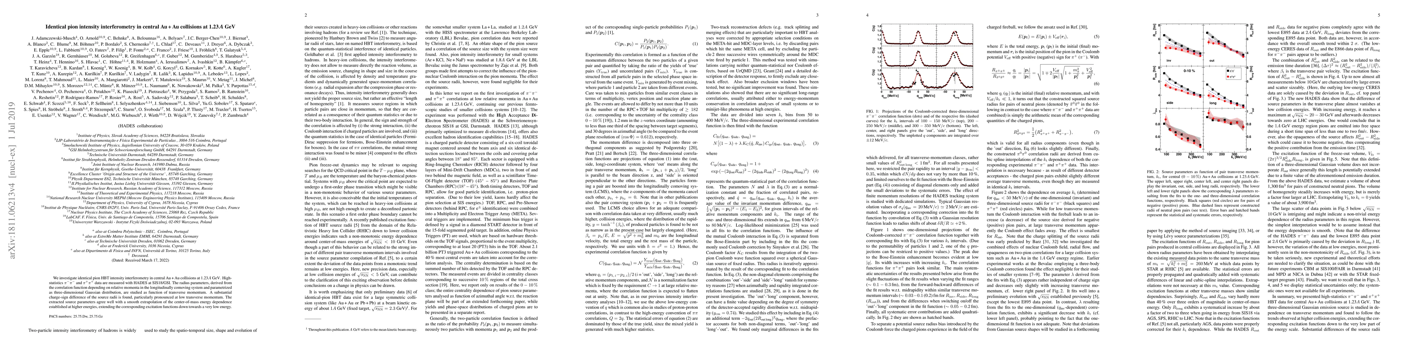 We investigate identical pion HBT intensity interferometry for central Au+Au collisions at 1.23A GeV. High-statistics $\pi^-\pi^-$ and $\pi^+\pi^+$ data are measured with HADES at SIS18/GSI. The radius parameters, derived from the correlation function depending on relative momenta in the longitudinal-comoving system and parametrized as three-dimensional Gaussian distribution, are studied as function of transverse momentum. A substantial charge-sign difference of the source radii is found, particularly pronounced at low transverse momentum. The extracted Coulomb-corrected source parameters agree well with a smooth extrapolation of the center-of-mass energy dependence established at higher energies, extending the corresponding excitation functions down towards a very low energy. Our data would thus rather disfavour any strong energy dependence of the radius parameters in the low energy region.