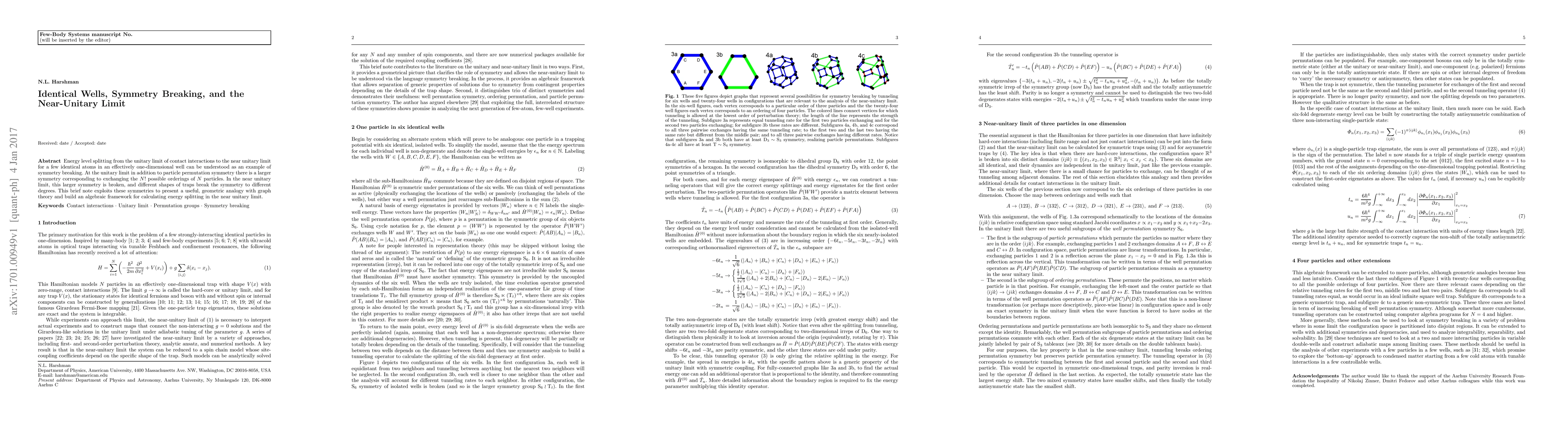 Researchers explore how symmetry breaks in a system of identical atoms affect their energy levels when transitioning from a unitary limit to a near-unitary limit, providing an algebraic framework for calculating the resulting energy splitting.