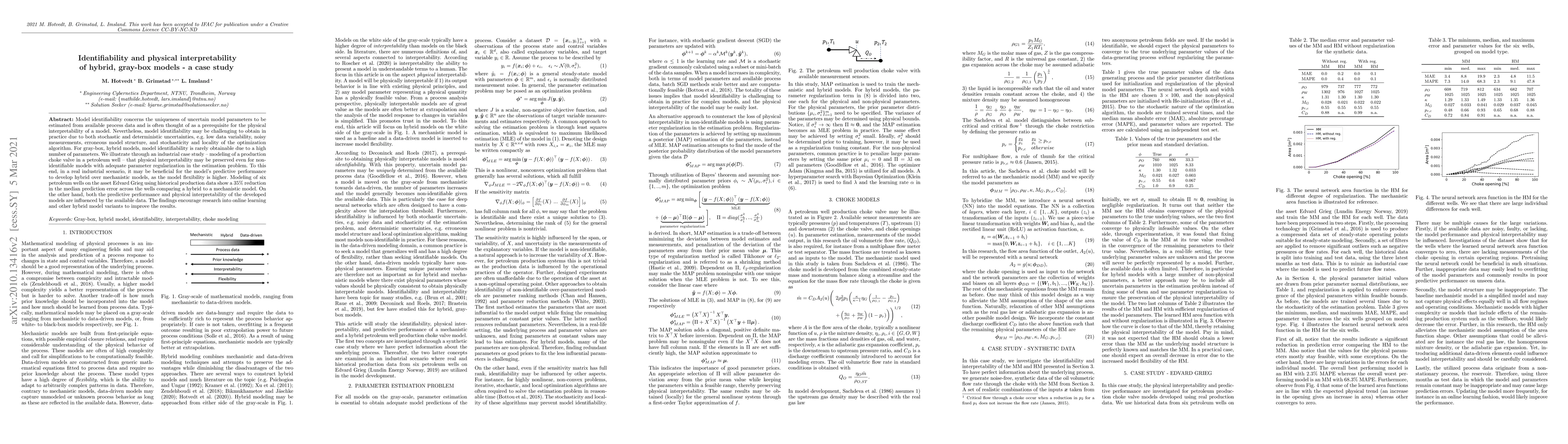 Researchers found that hybrid models can preserve physical interpretability even when they are not identifiable, as long as parameter regularization is used. This approach outperforms mechanistic models in predicting production data with a 35% reduction in median prediction error.