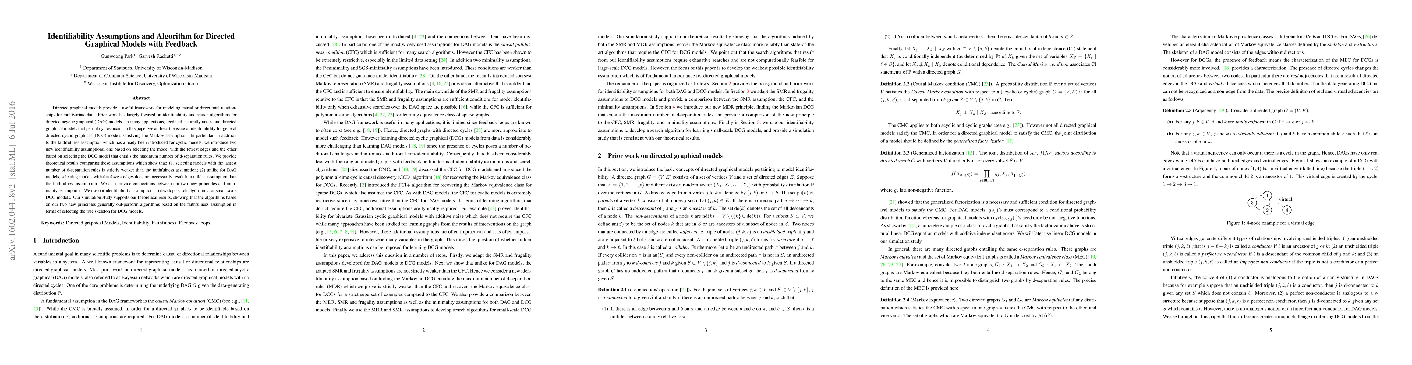This paper introduces new identifiability assumptions for directed cyclic graphical (DCG) models with feedback, proposing two principles: selecting the fewest edges and the maximum number of d-separation rules. It demonstrates that these assumptions outperform the traditional faithfulness assumption in identifying true DCG models, supported by both theoretical analysis and simulation results.