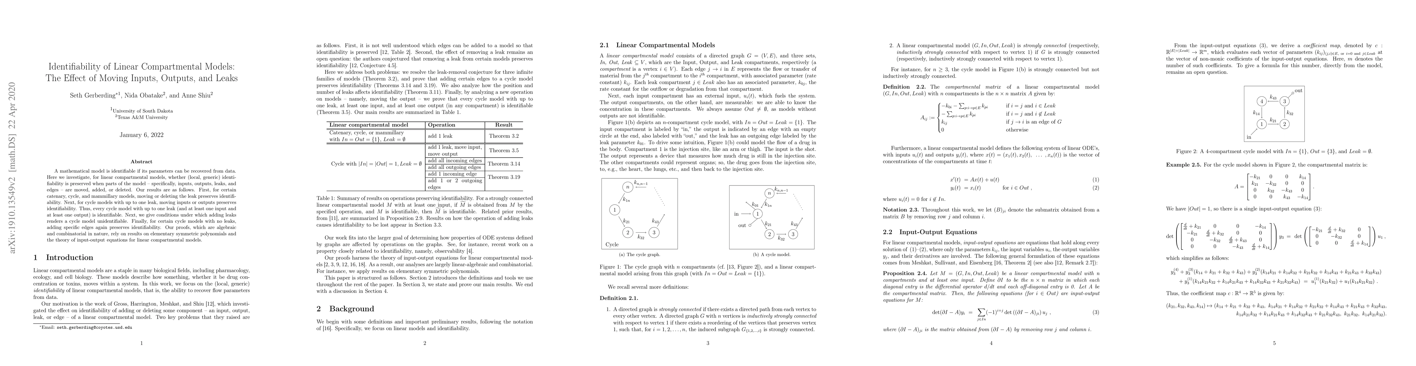 A mathematical model is identifiable if its parameters can be recovered from data. Here we investigate, for linear compartmental models, whether (local, generic) identifiability is preserved when parts of the model -- specifically, inputs, outputs, leaks, and edges -- are moved, added, or deleted. Our results are as follows. First, for certain catenary, cycle, and mammillary models, moving or deleting the leak preserves identifiability. Next, for cycle models with up to one leak, moving inputs or outputs preserves identifiability. Thus, every cycle model with up to one leak (and at least one input and at least one output) is identifiable. Next, we give conditions under which adding leaks renders a cycle model unidentifiable. Finally, for certain cycle models with no leaks, adding specific edges again preserves identifiability. Our proofs, which are algebraic and combinatorial in nature, rely on results on elementary symmetric polynomials and the theory of input-output equations for linear compartmental models.