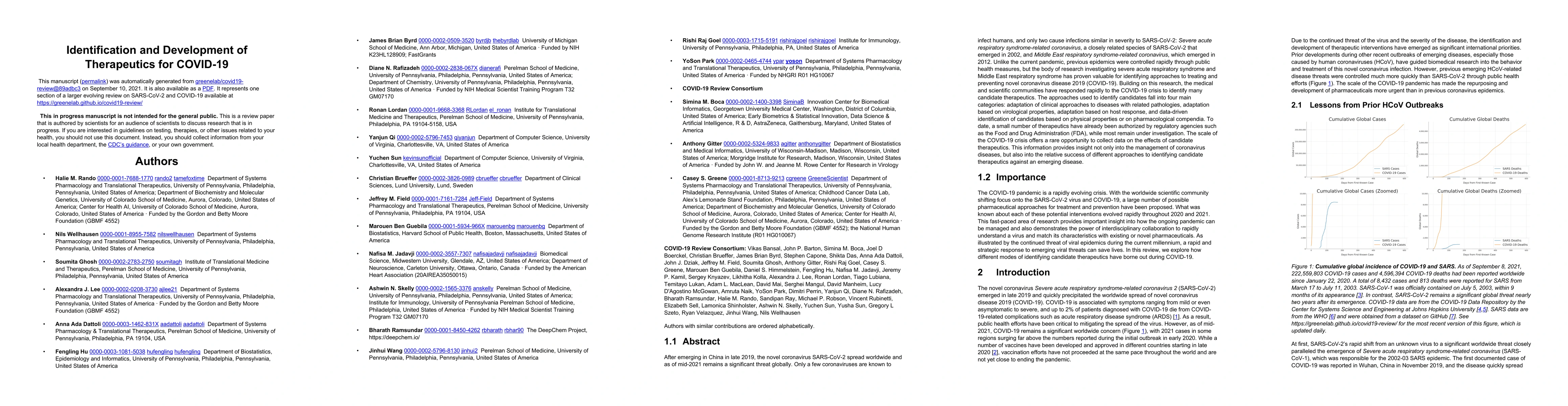Researchers identified several therapeutics for COVID-19, including authorized treatments and those under investigation, building on insights from previous coronaviruses like SARS and MERS.