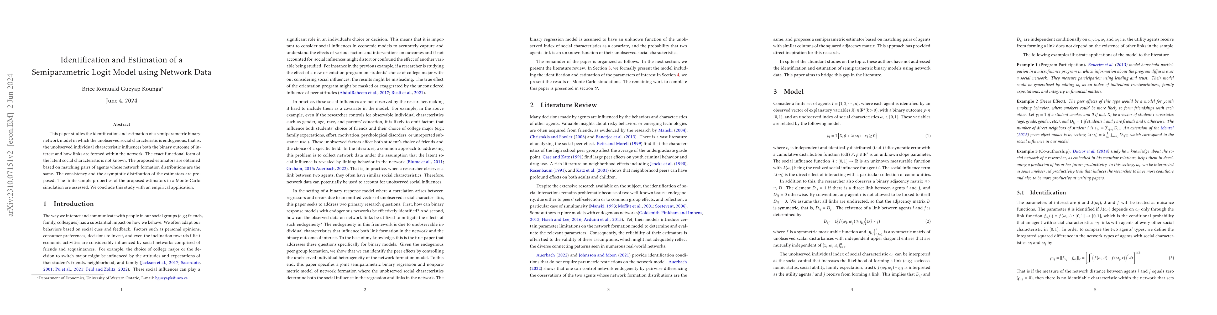 This paper studies the identification and estimation of a semiparametric binary network model in which the unobserved social characteristic is endogenous, that is, the unobserved individual characteristic influences both the binary outcome of interest and how links are formed within the network. The exact functional form of the latent social characteristic is not known. The proposed estimators are obtained based on matching pairs of agents whose network formation distributions are the same. The consistency and the asymptotic distribution of the estimators are proposed. The finite sample properties of the proposed estimators in a Monte-Carlo simulation are assessed. We conclude this study with an empirical application.