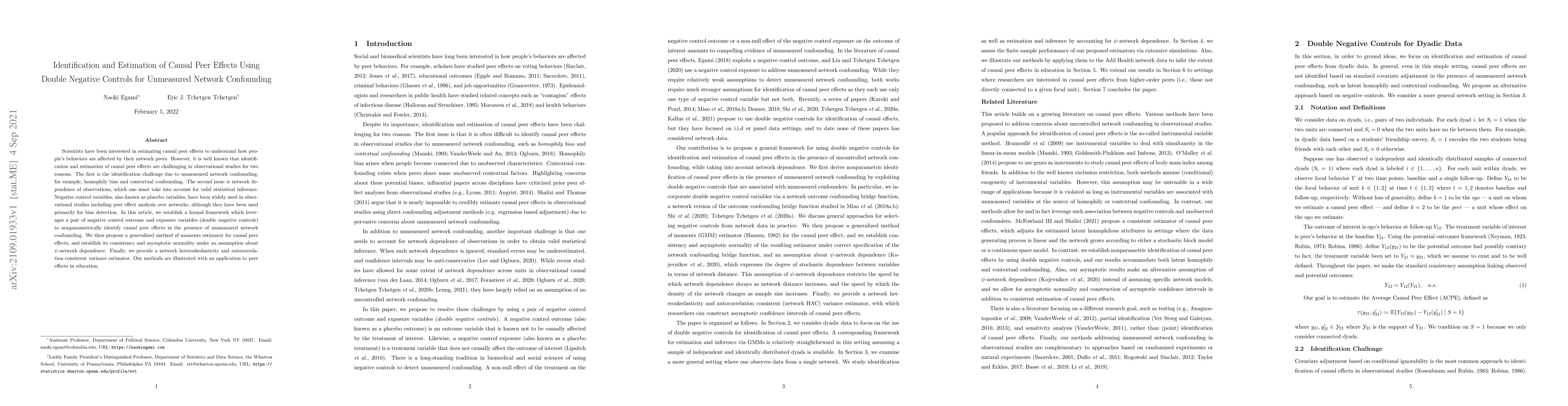 This paper develops a framework using double negative controls to identify and estimate causal peer effects in observational studies, addressing unmeasured network confounding and network dependence. It proposes a generalized method of moments estimator and provides a heteroskedasticity and autocorrelation consistent variance estimator, demonstrated through an application to peer effects in education.