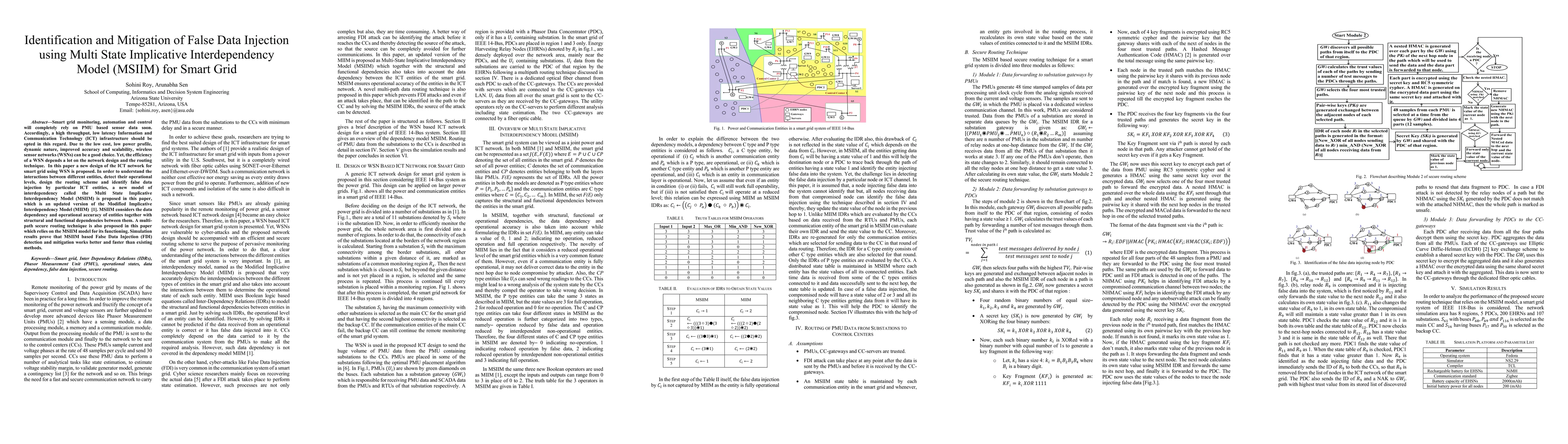 Smart grid monitoring, automation and control will completely rely on PMU based sensor data soon. Accordingly, a high throughput, low latency Information and Communication Technology (ICT) infrastructure should be opted in this regard. Due to the low cost, low power profile, dynamic nature, improved accuracy and scalability, wireless sensor networks (WSNs) can be a good choice. Yet, the efficiency of a WSN depends a lot on the network design and the routing technique. In this paper a new design of the ICT network for smart grid using WSN is proposed. In order to understand the interactions between different entities, detect their operational levels, design the routing scheme and identify false data injection by particular ICT entities, a new model of interdependency called the Multi State Implicative Interdependency Model (MSIIM) is proposed in this paper, which is an updated version of the Modified Implicative Interdependency Model (MIIM) [1]. MSIIM considers the data dependency and operational accuracy of entities together with structural and functional dependencies between them. A multi-path secure routing technique is also proposed in this paper which relies on the MSIIM model for its functioning. Simulation results prove that MSIIM based False Data Injection (FDI) detection and mitigation works better and faster than existing methods.