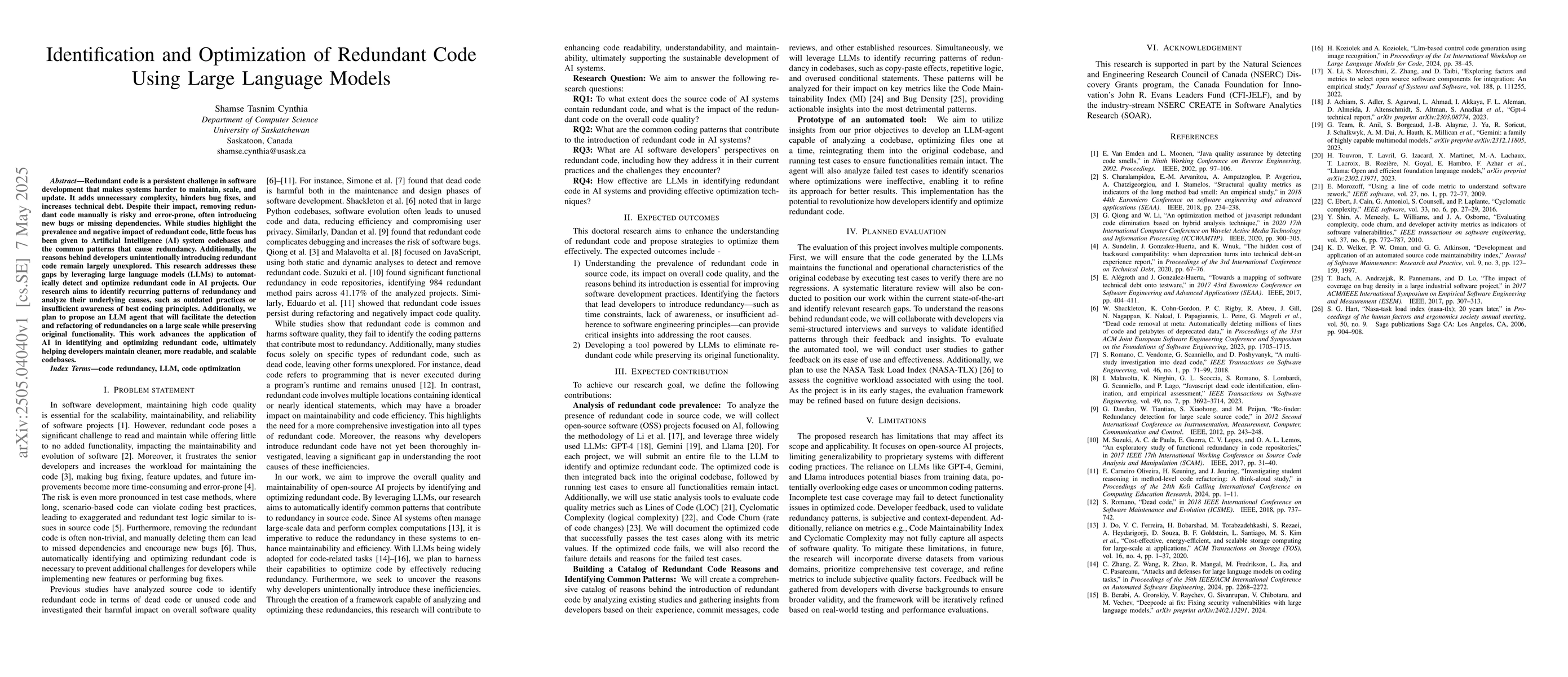 This research aims to improve software development practices by identifying and optimizing redundant code in AI projects.