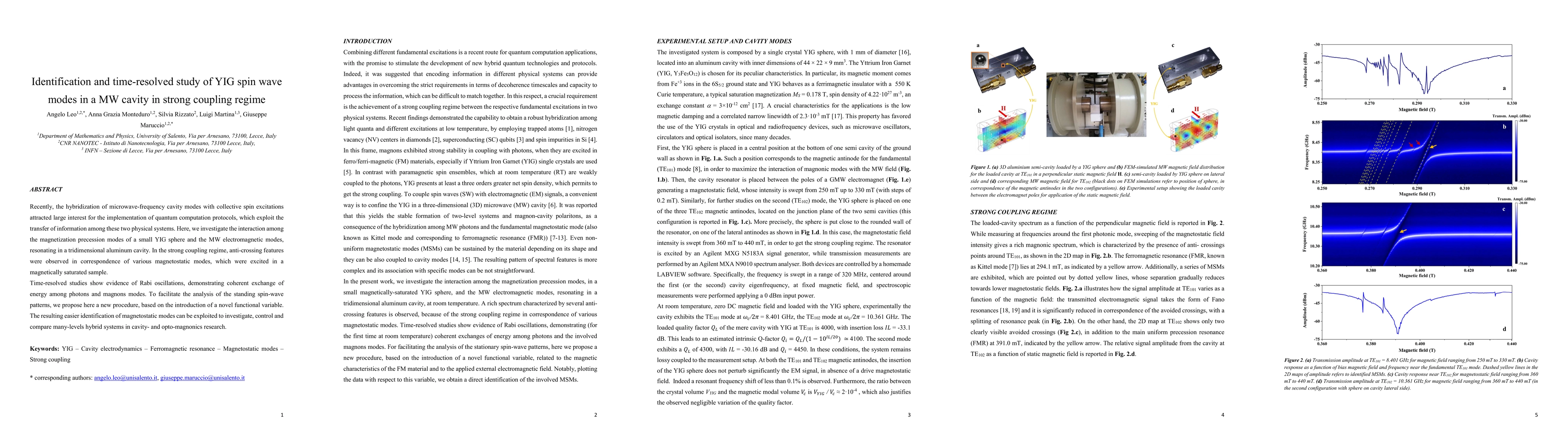 Recently, the hybridization of microwave-frequency cavity modes with collective spin excitations attracted large interest for the implementation of quantum computation protocols, which exploit the transfer of information among these two physical systems. Here, we investigate the interaction among the magnetization precession modes of a small YIG sphere and the MW electromagnetic modes, resonating in a tridimensional aluminum cavity. In the strong coupling regime, anti-crossing features were observed in correspondence of various magnetostatic modes, which were excited in a magnetically saturated sample. Time-resolved studies show evidence of Rabi oscillations, demonstrating coherent exchange of energy among photons and magnons modes. To facilitate the analysis of the standing spin-wave patterns, we propose here a new procedure, based on the introduction of a novel functional variable. The resulting easier identification of magnetostatic modes can be exploited to investigate, control and compare many-levels hybrid systems in cavity- and opto-magnonics research.