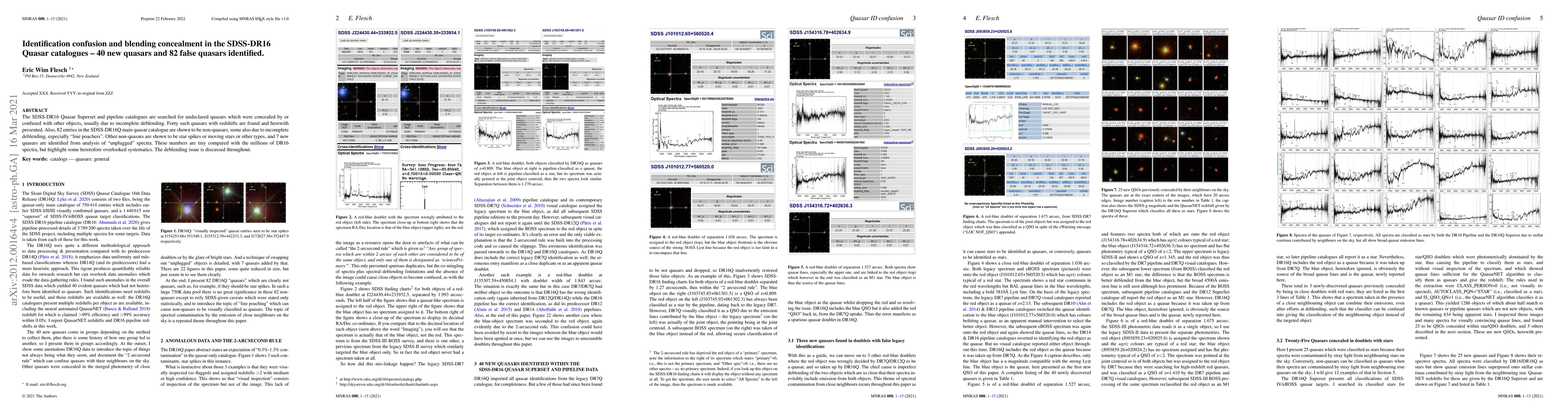 Researchers identified 40 new quasars and 82 false quasars in the SDSS-DR16 catalogue, highlighting a common issue of incomplete deblending that can lead to identification confusion.