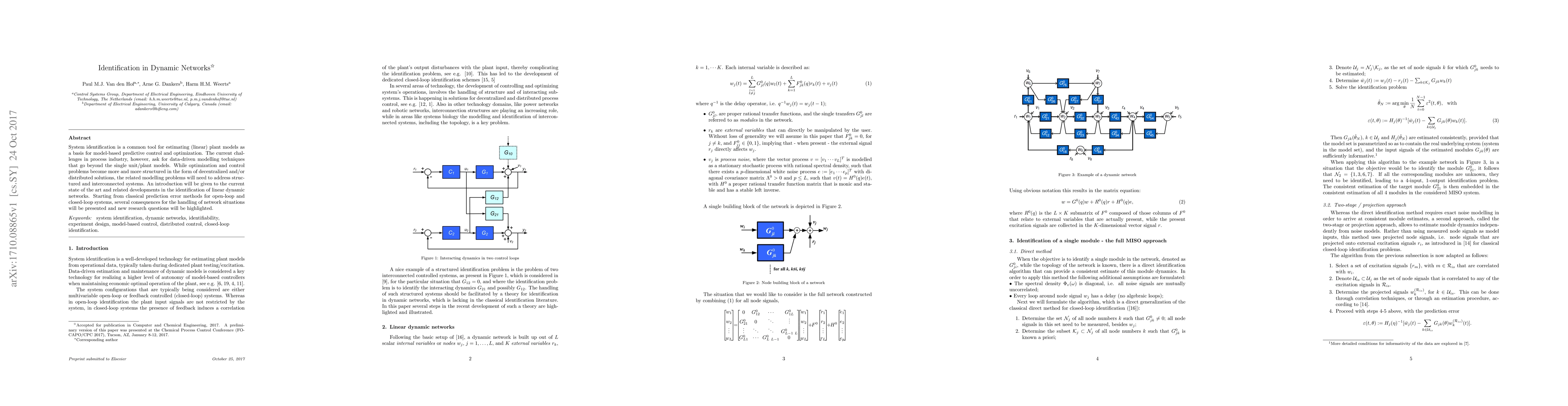 System identification is a common tool for estimating (linear) plant models as a basis for model-based predictive control and optimization. The current challenges in process industry, however, ask for data-driven modelling techniques that go beyond the single unit/plant models. While optimization and control problems become more and more structured in the form of decentralized and/or distributed solutions, the related modelling problems will need to address structured and interconnected systems. An introduction will be given to the current state of the art and related developments in the identification of linear dynamic networks. Starting from classical prediction error methods for open-loop and closed-loop systems, several consequences for the handling of network situations will be presented and new research questions will be highlighted.