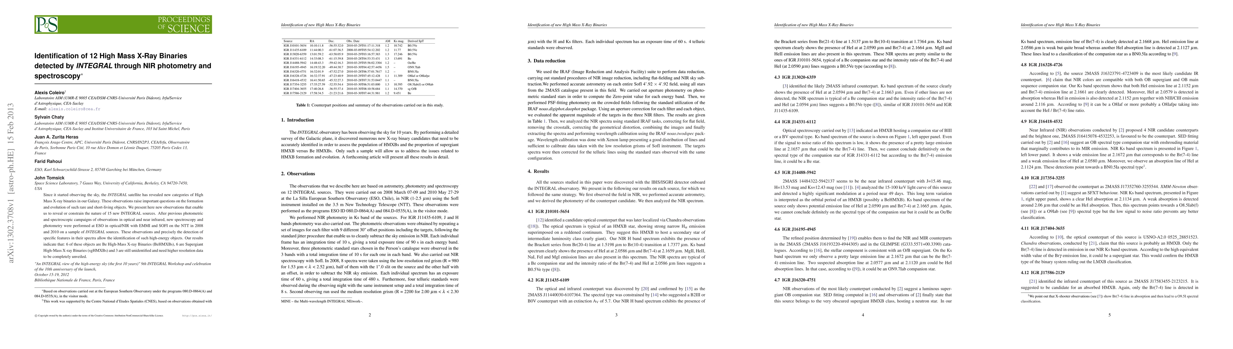 The INTEGRAL satellite has identified 12 new High Mass X-ray Binaries through NIR photometry and spectroscopy. The study confirms 6 BeHMXBs and 6 sgHMXBs, while 3 remain unidentified and require higher resolution data.