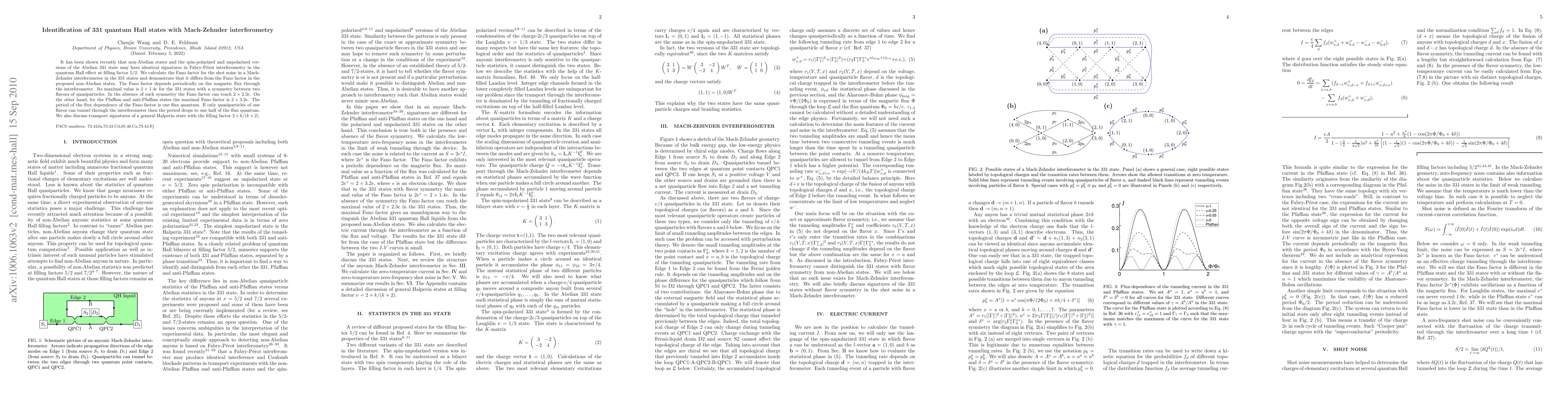 This paper identifies 331 quantum Hall states using Mach-Zehnder interferometry, showing that the Fano factor for shot noise differs between Abelian 331 states and non-Abelian states, providing a method to distinguish between them based on periodic flux dependence.