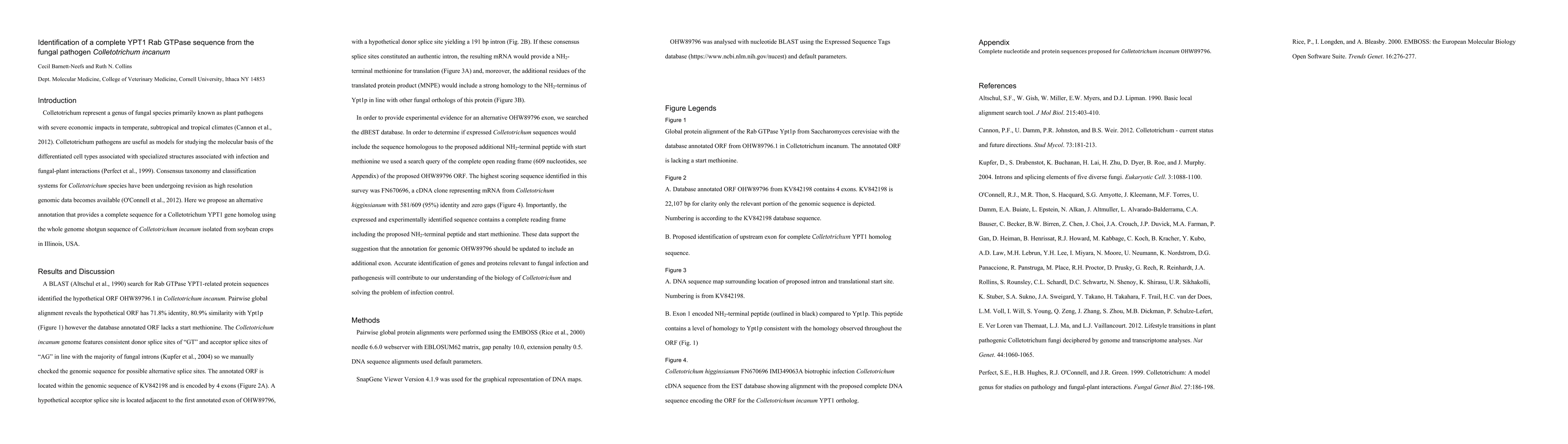 Researchers identified a complete YPT1 Rab GTPase sequence from Colletotrichum incanum, a fungal pathogen causing significant economic losses in plant crops. The discovery provides a new annotation for the species using whole genome shotgun sequencing data.