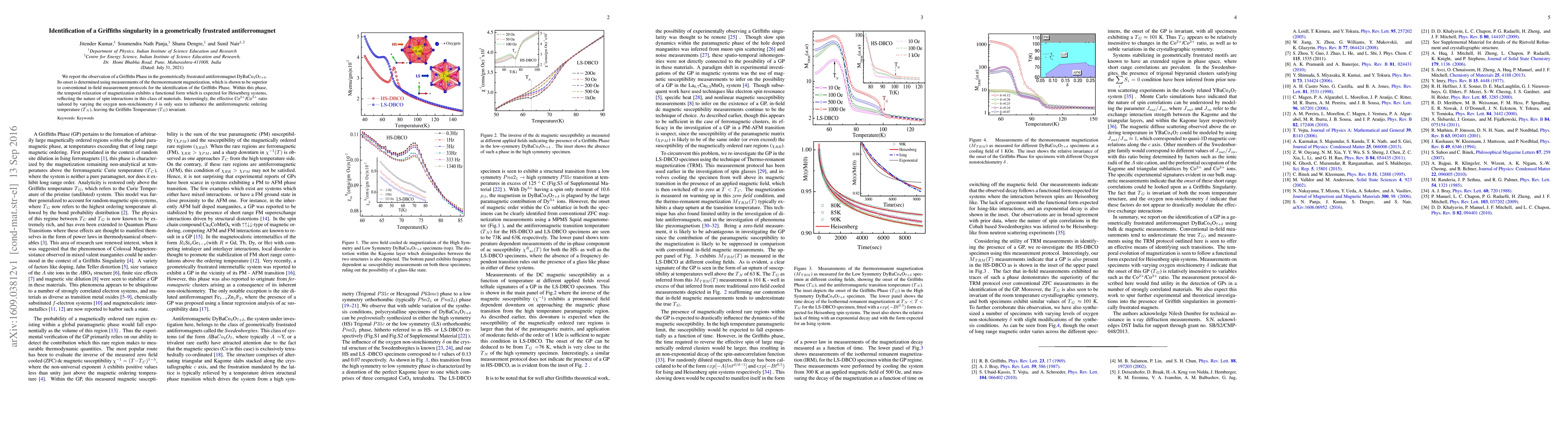 We report the observation of a Griffiths Phase in the geometrically frustrated antiferromagnet DyBaCo${_4}$O${_{7+\delta}}$. Its onset is determined using measurements of the thermoremanent magnetization, which is shown to be superior to conventional in-field measurement protocols for the identification of the Griffiths Phase. Within this phase, the temporal relaxation of magnetization exhibits a functional form which is expected for Heisenberg systems, reflecting the nature of spin interactions in this class of materials. Interestingly, the effective Co${^{2+}}$/Co${^{3+}}$ ratio tailored by varying the oxygen non-stoichiometry $\delta$ is only seen to influence the antiferromagnetic ordering temperature ($T{_N}$), leaving the Griffiths Temperature ($T{_G}$) invariant.