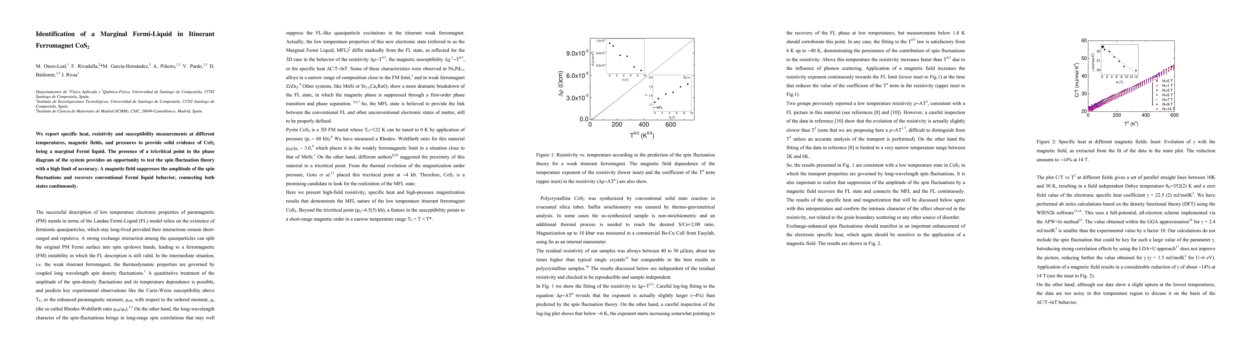 The research identifies CoS2 as a marginal Fermi liquid through specific heat, resistivity, and susceptibility measurements. A tricritical point in its phase diagram allows for precise testing of spin fluctuation theory, showing magnetic field suppression of spin fluctuations and a continuous connection to conventional Fermi liquid behavior.