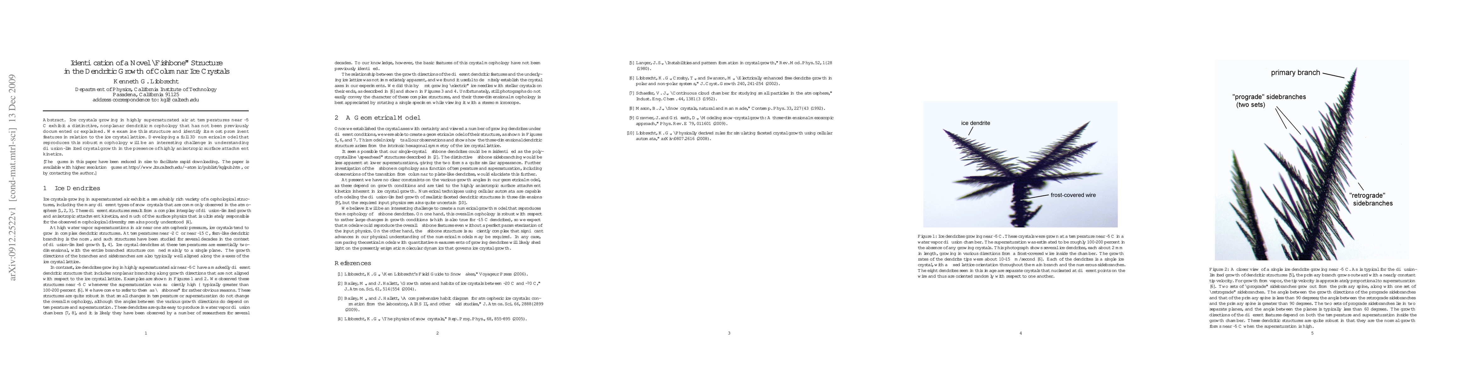 This paper identifies a novel "fishbone" dendritic structure in columnar ice crystals grown under highly supersaturated conditions near -5°C, previously undocumented. The study aims to understand its formation in relation to the ice crystal lattice, presenting a challenge for developing a 3D numerical model to simulate diffusion-limited growth.