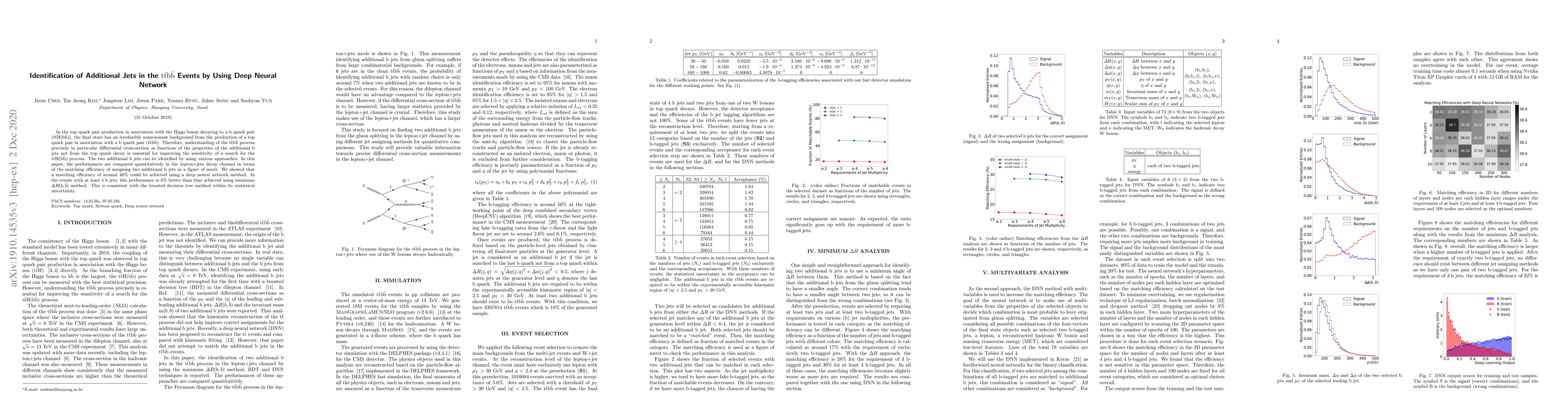 In the top quark pair production in association with the Higgs boson decaying to a b quark pair t-tbar H (b-bbar), the final state has an irreducible nonresonant background from the production of a top quark pair in association with a b quark pair t-tbar b-bbar. Therefore, understanding of the t-tbar b-bbar process precisely in particular differential cross-section as functions of the properties of the additional b jets not from the top quark decay is essential for improving the sensitivity of a search for the t-tbar H b-bbar process. The two additional b jets can be identified by using various approaches. In this paper, the performances are compared quantitatively in the lepton+jets decay channel in terms of the matching efficiency of assigning two additional b jets as a figure of merit. This study provides valuable information towards the precise measurement of differential cross-sections as a function of properties of the additional b jets in the t-tbar b-bbar events. We showed that a matching efficiency of around 40% could be achieved using a deep neural network method. In the events with at least 4 b jets, this performance is 8% better than that achieved using minimum Delta R(b,bbar) method. This is consistent with the boosted decision tree method within its statistical uncertainty.