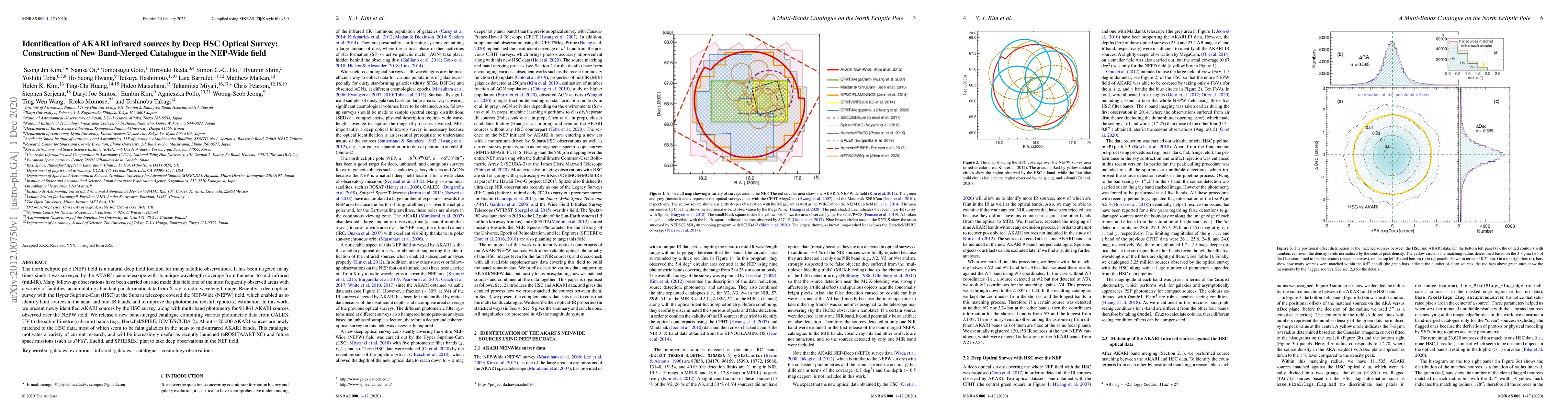 The north ecliptic pole (NEP) field is a natural deep field location for many satellite observations. It has been targeted manytimes since it was surveyed by the AKARI space telescope with its unique wavelength coverage from the near- to mid-infrared(mid-IR). Many follow-up observations have been carried out and made this field one of the most frequently observed areas witha variety of facilities, accumulating abundant panchromatic data from X-ray to radio wavelength range. Recently, a deep opticalsurvey with the Hyper Suprime-Cam (HSC) at the Subaru telescope covered the NEP-Wide (NEPW) field, which enabled us toidentify faint sources in the near- and mid-IR bands, and to improve the photometric redshift (photo-z) estimation. In this work,we present newly identified AKARI sources by the HSC survey, along with multi-band photometry for 91,861 AKARI sourcesobserved over the NEPW field. We release a new band-merged catalogue combining various photometric data from GALEXUV to the submillimetre (sub-mm) bands (e.g., Herschel/SPIRE, JCMT/SCUBA-2). About 20,000 AKARI sources are newlymatched to the HSC data, most of which seem to be faint galaxies in the near- to mid-infrared AKARI bands. This cataloguemotivates a variety of current research, and will be increasingly useful as recently launched (eROSITA/ART-XC) and futurespace missions (such as JWST, Euclid, and SPHEREx) plan to take deep observations in the NEP field.