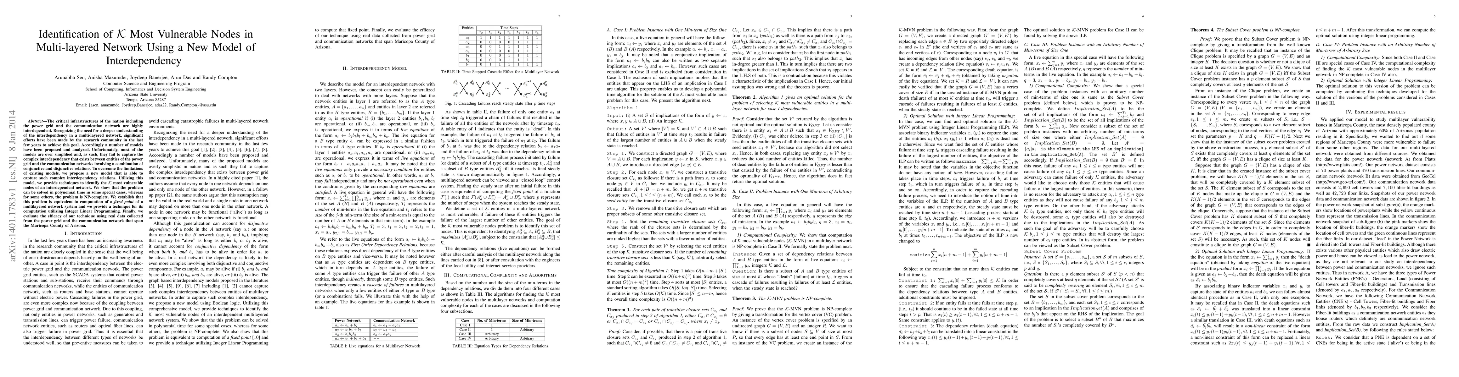 The critical infrastructures of the nation including the power grid and the communication network are highly interdependent. Recognizing the need for a deeper understanding of the interdependency in a multi-layered network, significant efforts have been made by the research community in the last few years to achieve this goal. Accordingly a number of models have been proposed and analyzed. Unfortunately, most of the models are over simplified and, as such, they fail to capture the complex interdependency that exists between entities of the power grid and the communication networks involving a combination of conjunctive and disjunctive relations. To overcome the limitations of existing models, we propose a new model that is able to capture such complex interdependency relations. Utilizing this model, we provide techniques to identify the $\cal K$ most vulnerable nodes of an interdependent network. We show that the problem can be solved in polynomial time in some special cases, whereas for some others, the problem is NP-complete. We establish that this problem is equivalent to computation of a {\em fixed point} of a multilayered network system and we provide a technique for its computation utilizing Integer Linear Programming. Finally, we evaluate the efficacy of our technique using real data collected from the power grid and the communication network that span the Maricopa County of Arizona.