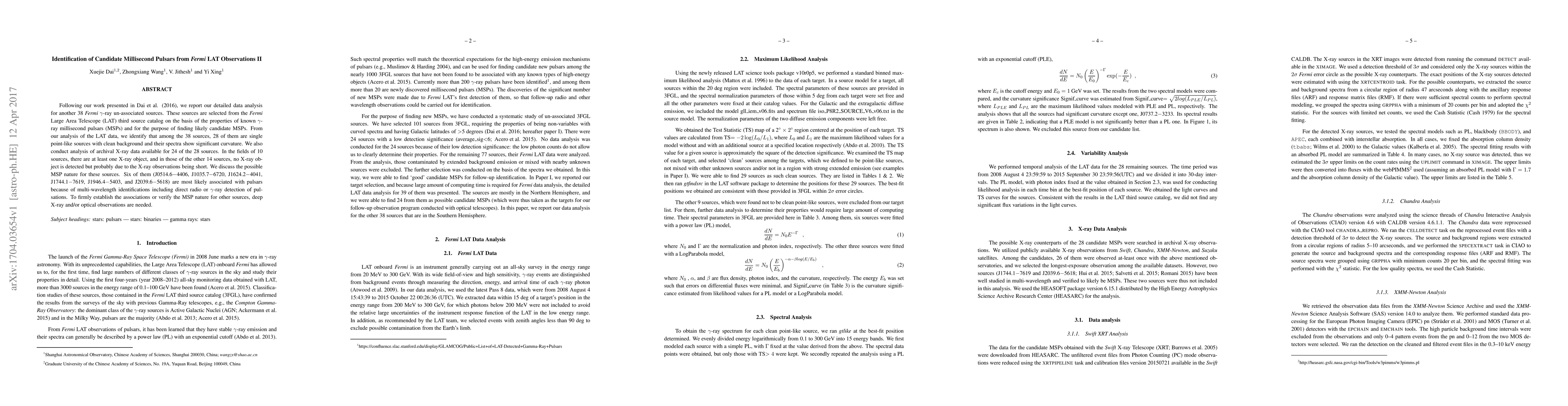 Following our work presented in Dai et al. (2016), we report our detailed data analysis for another 38 Fermi gamma-ray un-associated sources. These sources are selected from the Fermi Large Area Telescope (LAT) third source catalog on the basis of the properties of known gamma-ray millisecond pulsars (MSPs) and for the purpose of finding likely candidate MSPs. From our analysis of the LAT data, we identify that among the 38 sources, 28 of them are single point-like sources with clean background and their spectra show significant curvature. We also conduct analysis of archival X-ray data available for 24 of the 28 sources. In the fields of 10 sources, there are at least one X-ray object, and in those of the other 14 sources, no X-ray object is detected but probably due to the X-ray observations being short. We discuss the possible MSP nature for these sources. Six of them(J0514.6-4406, J1035.7-6720, J1624.2-4041, J1744.1-7619, J1946.4-5403, and J2039.6-5618) are most likely associated with pulsars because of multi-wavelength identifications including direct radio or gamma-ray detection of pulsations. To firmly establish the associations or verify the MSP nature for other sources, deep X-ray and/or optical observations are needed.