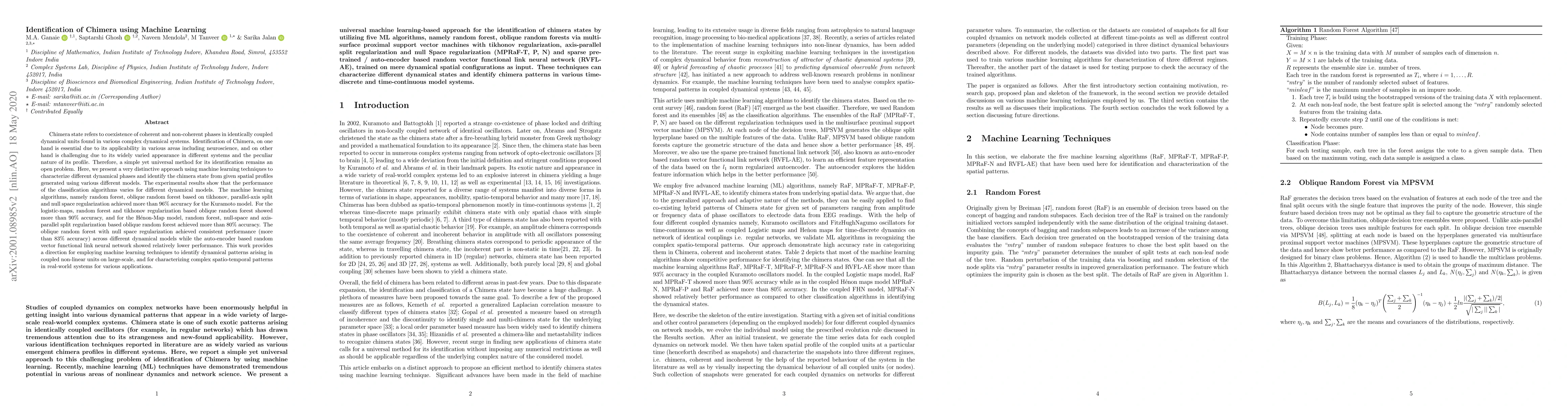 The research uses a machine learning approach to classify chimera states in complex systems.