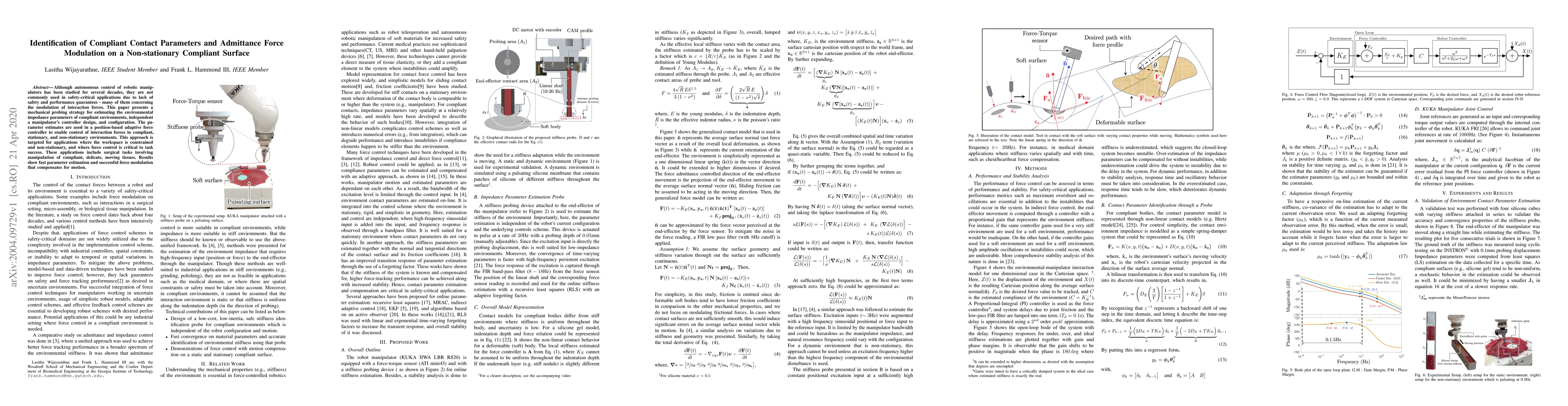 Although autonomous control of robotic manipulators has been studied for several decades, they are not commonly used in safety-critical applications due to lack of safety and performance guarantees - many of them concerning the modulation of interaction forces. This paper presents a mechanical probing strategy for estimating the environmental impedance parameters of compliant environments, independent a manipulator's controller design, and configuration. The parameter estimates are used in a position-based adaptive force controller to enable control of interaction forces in compliant, stationary, and non-stationary environments. This approach is targeted for applications where the workspace is constrained and non-stationary, and where force control is critical to task success. These applications include surgical tasks involving manipulation of compliant, delicate, moving tissues. Results show fast parameter estimation and successful force modulation that compensates for motion.