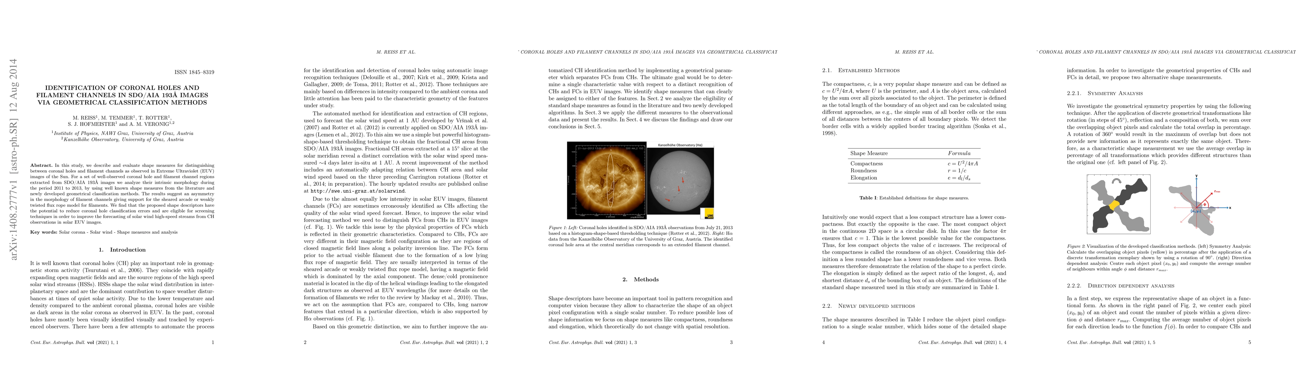 This study evaluates shape measures and geometrical classification methods to distinguish coronal holes from filament channels in SDO/AIA 193 Å images, finding an asymmetry in filament channels supporting the sheared arcade model. The proposed shape descriptors aim to reduce classification errors and improve solar wind forecasting.