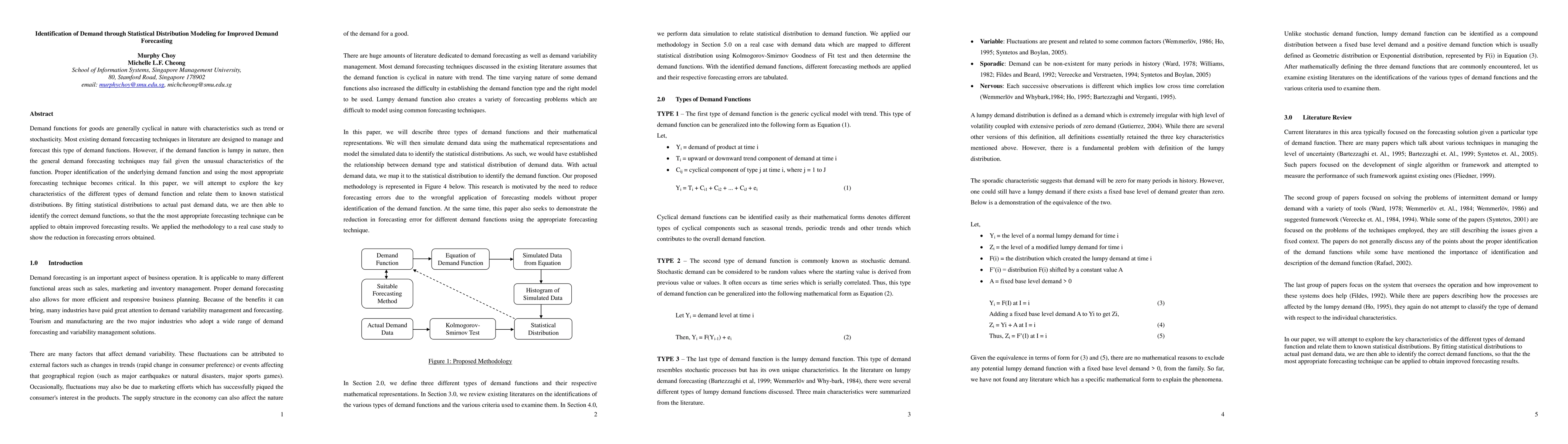 Demand functions for goods are generally cyclical in nature with characteristics such as trend or stochasticity. Most existing demand forecasting techniques in literature are designed to manage and forecast this type of demand functions. However, if the demand function is lumpy in nature, then the general demand forecasting techniques may fail given the unusual characteristics of the function. Proper identification of the underlying demand function and using the most appropriate forecasting technique becomes critical. In this paper, we will attempt to explore the key characteristics of the different types of demand function and relate them to known statistical distributions. By fitting statistical distributions to actual past demand data, we are then able to identify the correct demand functions, so that the the most appropriate forecasting technique can be applied to obtain improved forecasting results. We applied the methodology to a real case study to show the reduction in forecasting errors obtained.