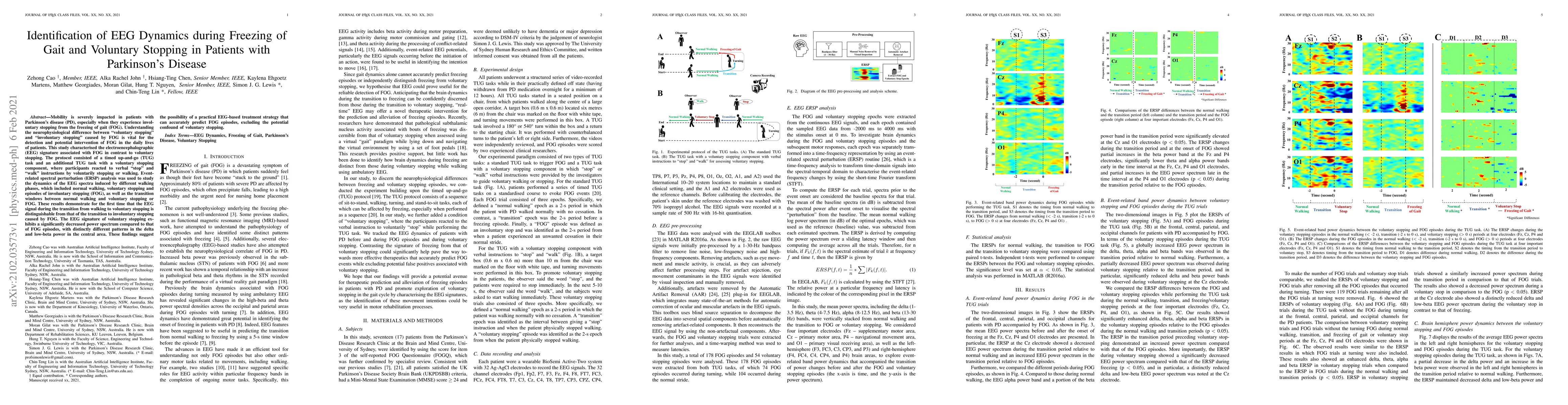 Researchers identified distinct EEG patterns for voluntary stopping and involuntary FOG episodes in Parkinson's patients, suggesting a potential EEG-based treatment strategy to predict FOG episodes.