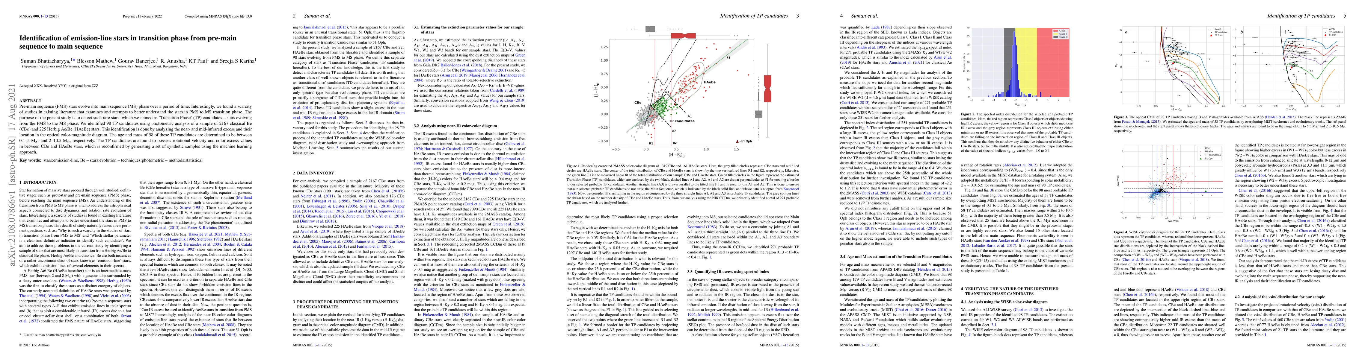 Researchers identified 98 'Transition Phase' stars that are evolving from pre-main sequence to main sequence using photometric analysis of Be and HAeBe star samples. These stars have unique properties between classical Be and HAeBe stars.