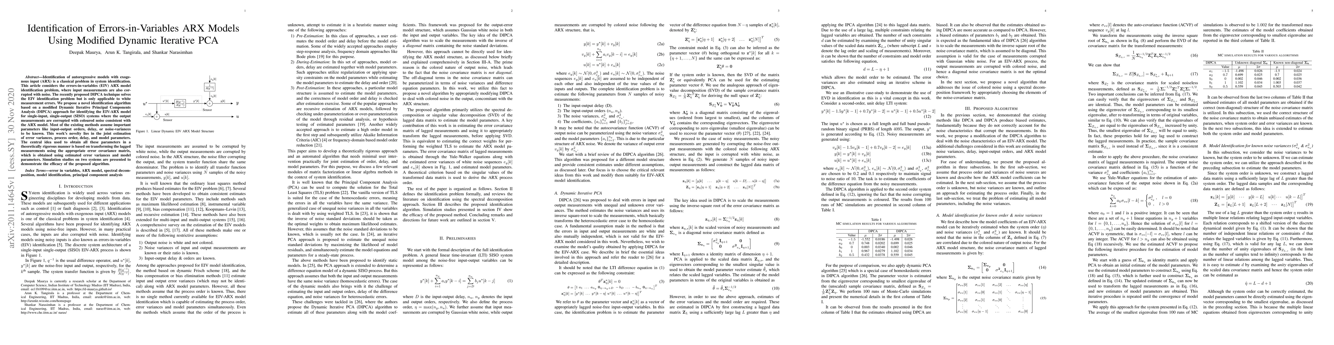 A novel algorithm is proposed for identifying errors-in-variables ARX models that can handle colored noise in output measurements, estimating key parameters like error variances and model coefficients simultaneously.
