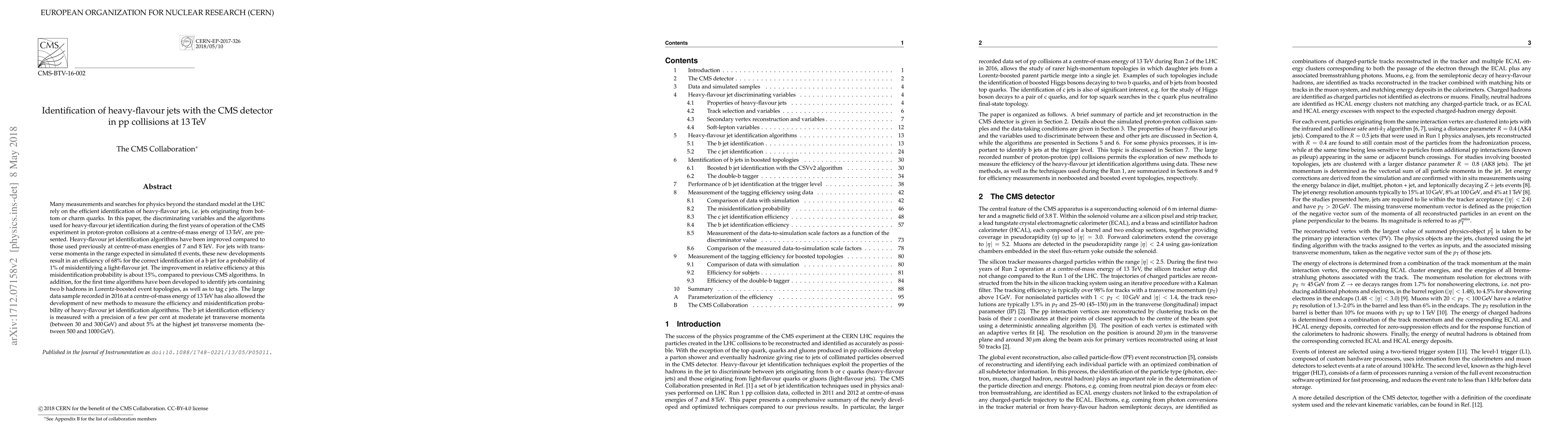 Many measurements and searches for physics beyond the standard model at the LHC rely on the efficient identification of heavy-flavour jets, i.e. jets originating from bottom or charm quarks. In this paper, the discriminating variables and the algorithms used for heavy-flavour jet identification during the first years of operation of the CMS experiment in proton-proton collisions at a centre-of-mass energy of 13 TeV, are presented. Heavy-flavour jet identification algorithms have been improved compared to those used previously at centre-of-mass energies of 7 and 8 TeV. For jets with transverse momenta in the range expected in simulated $\mathrm{t}\overline{\mathrm{t}}$ events, these new developments result in an efficiency of 68% for the correct identification of a b jet for a probability of 1% of misidentifying a light-flavour jet. The improvement in relative efficiency at this misidentification probability is about 15%, compared to previous CMS algorithms. In addition, for the first time algorithms have been developed to identify jets containing two b hadrons in Lorentz-boosted event topologies, as well as to tag c jets. The large data sample recorded in 2016 at a centre-of-mass energy of 13 TeV has also allowed the development of new methods to measure the efficiency and misidentification probability of heavy-flavour jet identification algorithms. The heavy-flavour jet identification efficiency is measured with a precision of a few per cent at moderate jet transverse momenta (between 30 and 300 GeV) and about 5% at the highest jet transverse momenta (between 500 and 1000 GeV).