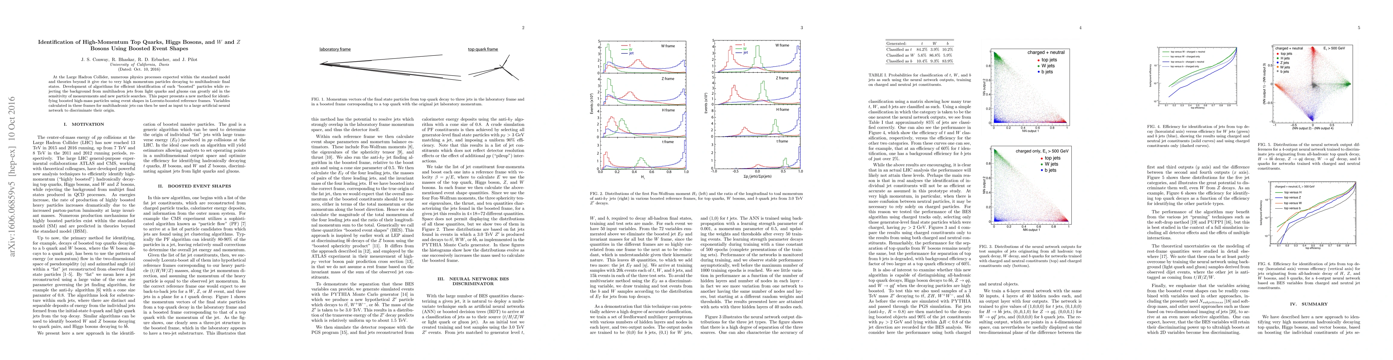 This paper introduces a novel method for identifying high-momentum particles, such as top quarks, Higgs bosons, and W/Z bosons, in multihadronic decay scenarios at the Large Hadron Collider. The technique uses event shapes in Lorentz-boosted reference frames and a neural network to distinguish these boosted particles from background jets produced by light quarks and gluons.