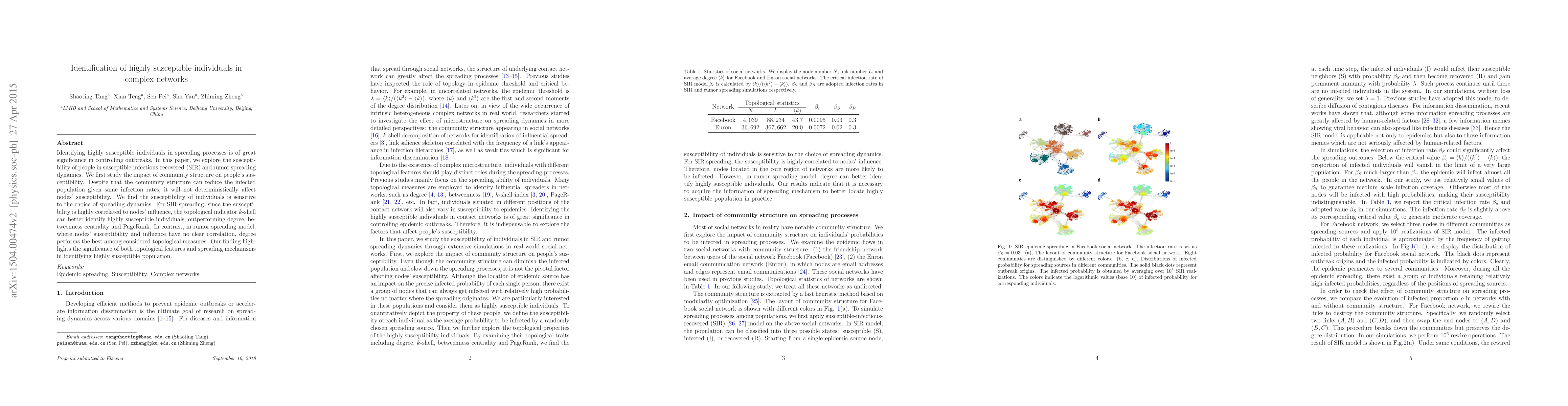 This paper investigates how to identify highly susceptible individuals in SIR and rumor spreading dynamics, finding that susceptibility is influenced by both community structure and spreading mechanisms. For SIR dynamics, k-shell outperforms other measures, while for rumor spreading, degree centrality is most effective.