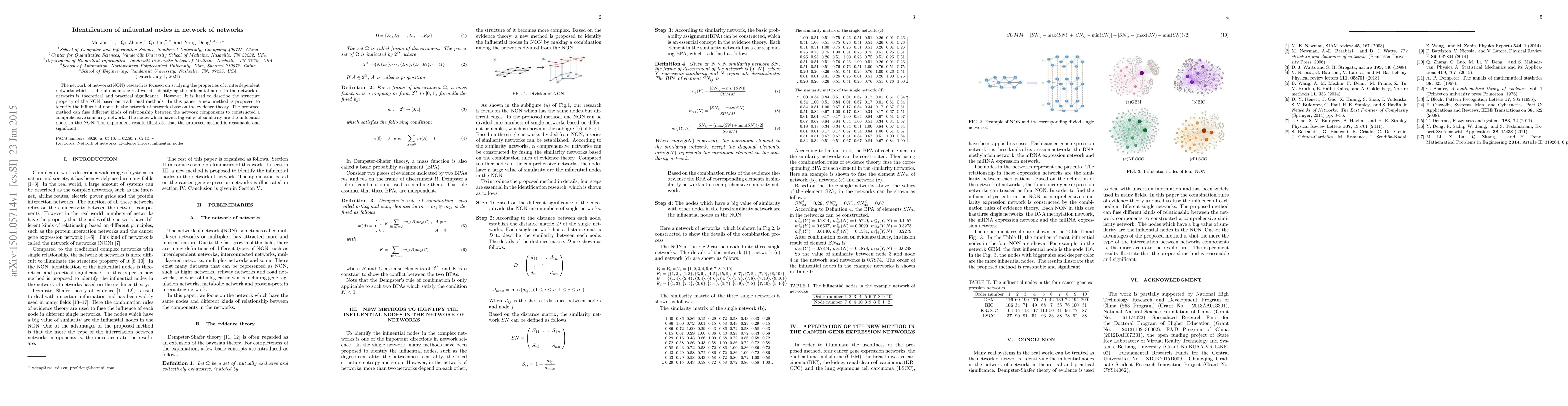 This paper proposes a novel method to identify influential nodes in a network of networks (NON) using evidence theory. It constructs a comprehensive similarity network by fusing various relationships between network components, highlighting nodes with high similarity as influential. Experimental results validate the method's effectiveness and significance.