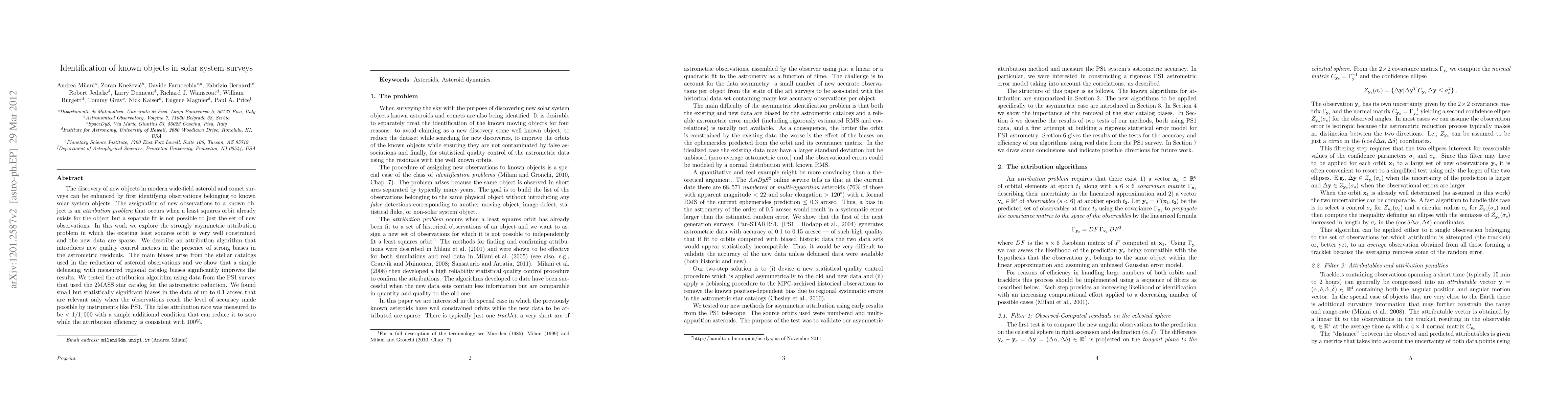 The discovery of new objects in modern wide-field asteroid and comet surveys can be enhanced by first identifying observations belonging to known solar system objects. The assignation of new observations to a known object is an attribution problem that occurs when a least squares orbit already exists for the object but a separate fit is not possible to just the set of new observations. In this work we explore the strongly asymmetric attribution problem in which the existing least squares orbit is very well constrained and the new data are sparse. We describe an attribution algorithm that introduces new quality control metrics in the presence of strong biases in the astrometric residuals. The main biases arise from the stellar catalogs used in the reduction of asteroid observations and we show that a simple debiasing with measured regional catalog biases significantly improves the results. We tested the attribution algorithm using data from the PS1 survey that used the 2MASS star catalog for the astrometric reduction. We found small but statistically significant biases in the data of up to 0.1 arcsec that are relevant only when the observations reach the level of accuracy made possible by instruments like PS1. The false attribution rate was measured to be < 1/1,000 with a simple additional condition that can reduce it to zero while the attribution efficiency is consistent with 100%.