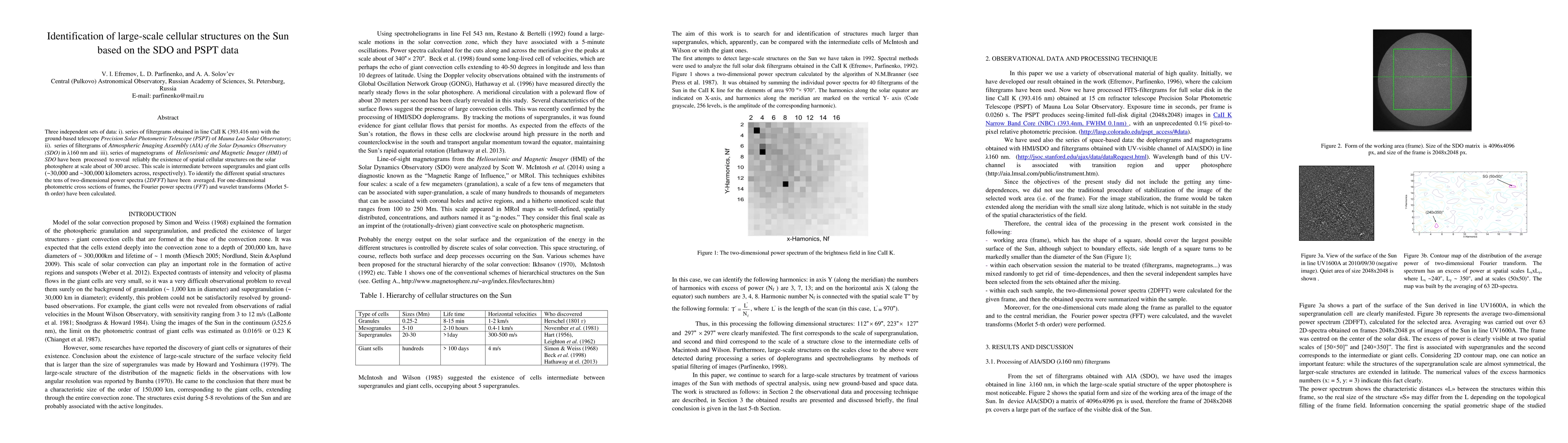 Three independent sets of data: i). series of filtergrams obtained in line CaII K (393.416 nm) with the ground-based telescope Precision Solar Photometric Telescope (PSPT) of Mauna Loa Solar Observatory; ii). series of filtergrams of Atmospheric Imaging Assembly (AIA) of the Solar Dynamics Observatory (SDO) in {\lambda}160 nm and iii). series of magnetograms of Helioseismic and Magnetic Imager (HMI) of SDO have been processed to reveal reliably the existence of spatial cellular structures on the solar photosphere at scale about of 300 arcsec. This scale is intermediate between supergranules and giant cells (~30,000 and ~300,000 kilometers across, respectively). To identify the different spatial structures the tens of two-dimensional power spectra (2DFFT) have been averaged. For one-dimensional photometric cross sections of frames, the Fourier power spectra (FFT) and wavelet transforms (Morlet 5-th order) have been calculated.