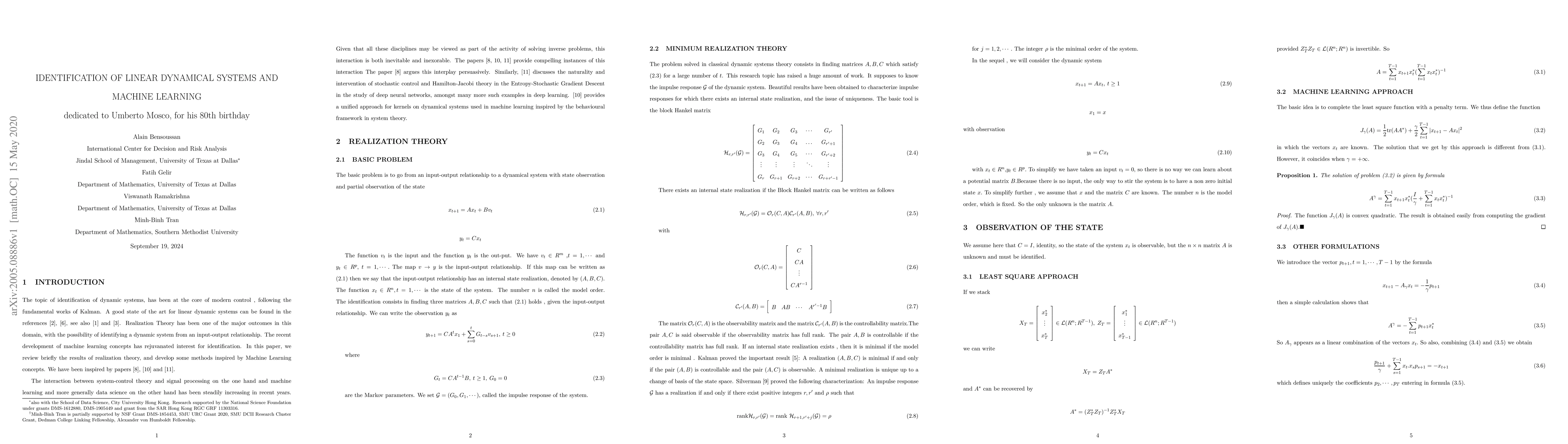 The paper aims to bridge the gap between control theory and machine learning, enabling better identification of dynamic systems.
