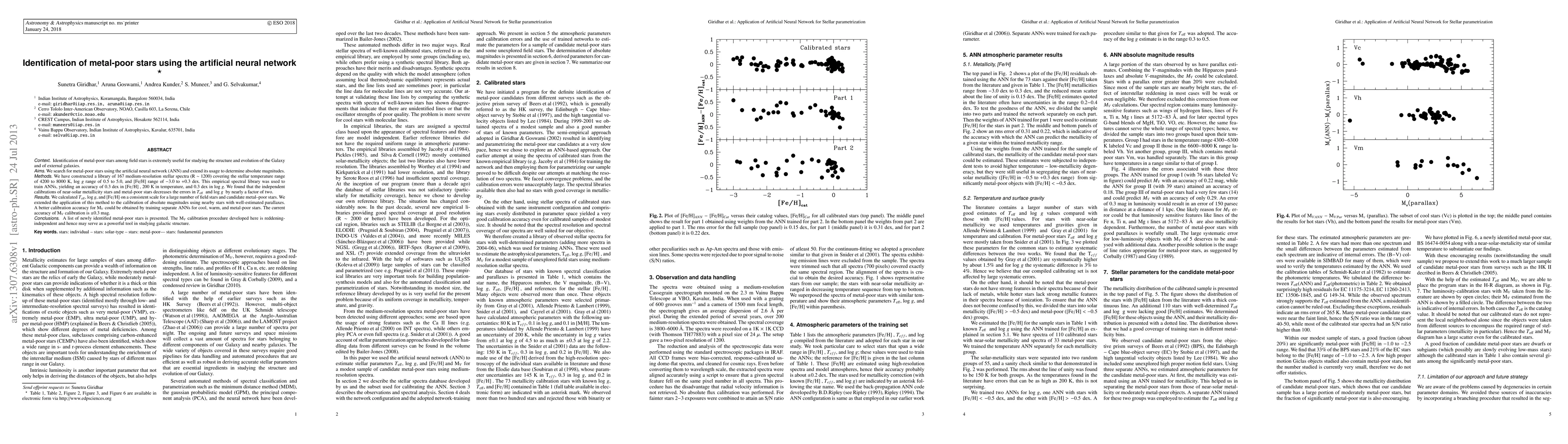 This paper uses an artificial neural network (ANN) to identify metal-poor stars, achieving an accuracy of 0.3 dex in metallicity, 200 K in temperature, and 0.3 dex in log g. The method also provides a reddening-independent calibration for absolute magnitudes with an accuracy of ±0.3 mag, offering a powerful tool for studying galactic structure.