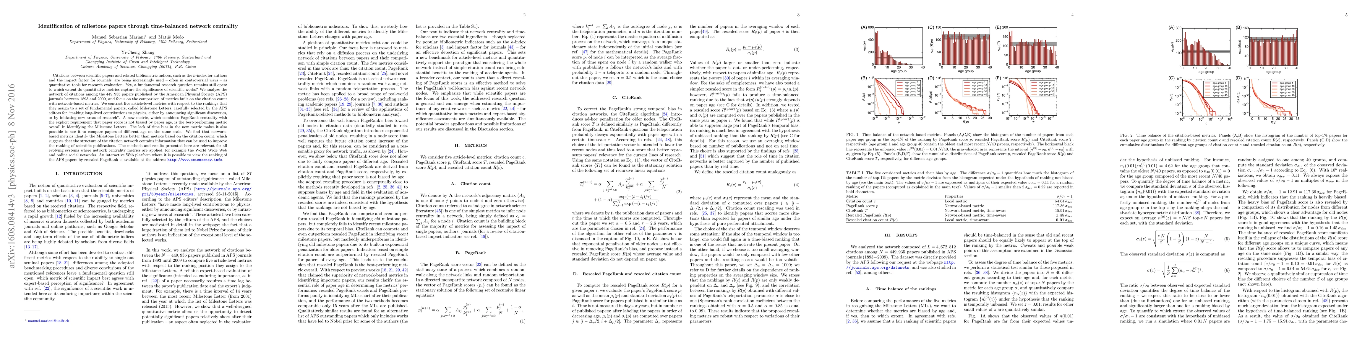This paper evaluates various metrics for identifying significant scientific papers by analyzing citation networks of American Physical Society journals. A new time-balanced network centrality metric, combining PageRank with age-neutral scoring, outperforms traditional citation-based metrics in ranking "Milestone Letters," indicating that network structure provides valuable insights into scientific impact.