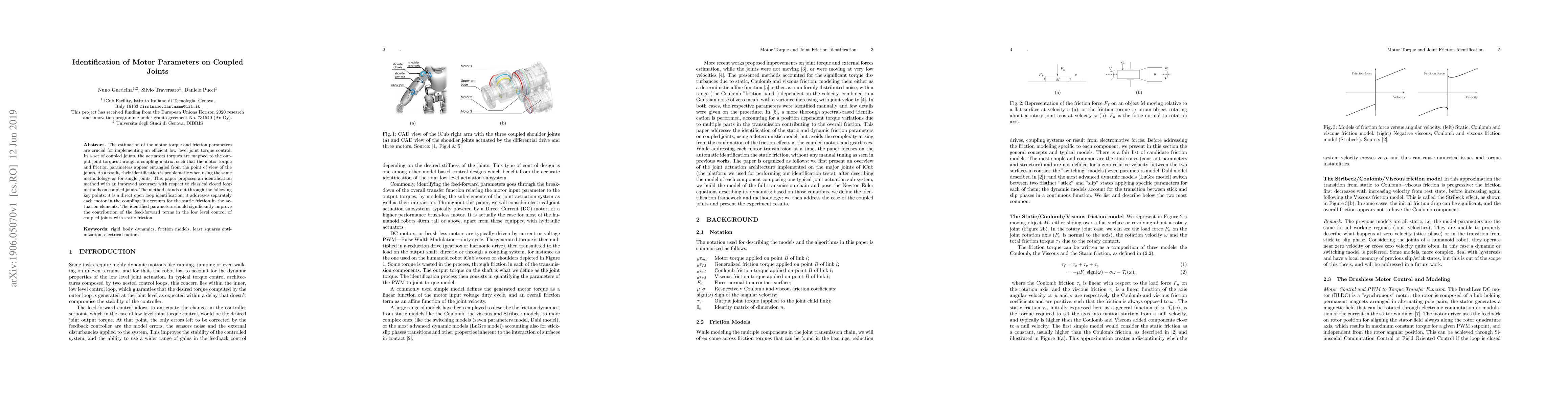 This paper proposes an improved open loop method for identifying motor torque and friction parameters in coupled joints, distinguishing each motor separately and accounting for static friction, which enhances the accuracy and efficiency of low-level joint torque control. The method's effectiveness is demonstrated through its direct approach and improved identification accuracy compared to classical closed loop methods.