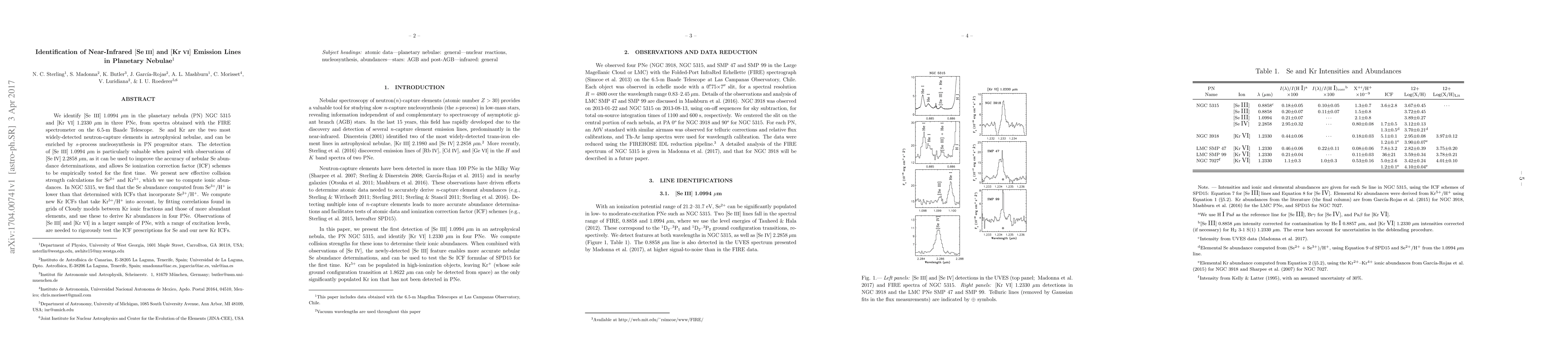 Researchers have identified new emission lines for selenium and krypton in planetary nebulae, which will help improve the accuracy of abundance determinations and test ionization correction factors.