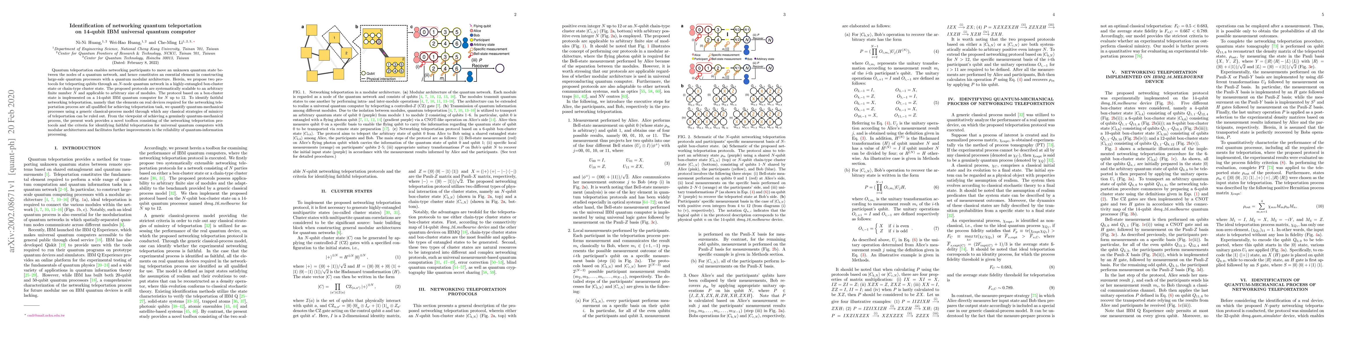 This paper proposes scalable protocols for quantum teleportation over an N-node quantum network using either box-cluster or chain-type cluster states, implemented on a 14-qubit IBM quantum computer. It introduces a method to identify faithful networking teleportation, ensuring genuine quantum-mechanical processes, thus advancing the reliability of quantum-information processing in modular architectures.