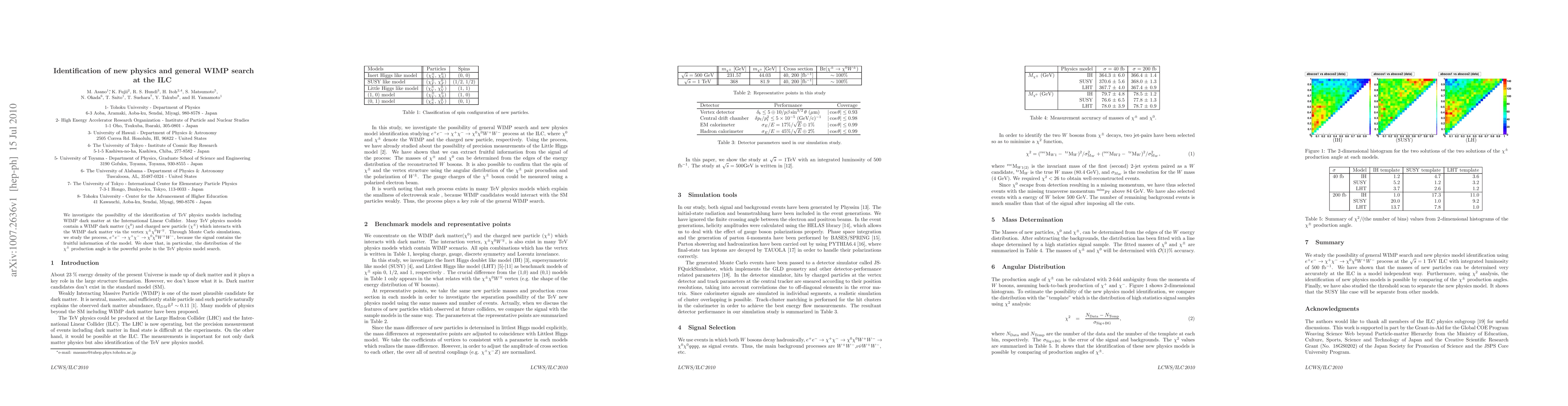 Researchers investigated the detection of new physics and WIMP dark matter at the International Linear Collider using Monte Carlo simulations, highlighting a key angle distribution as a powerful probe for TeV physics models.